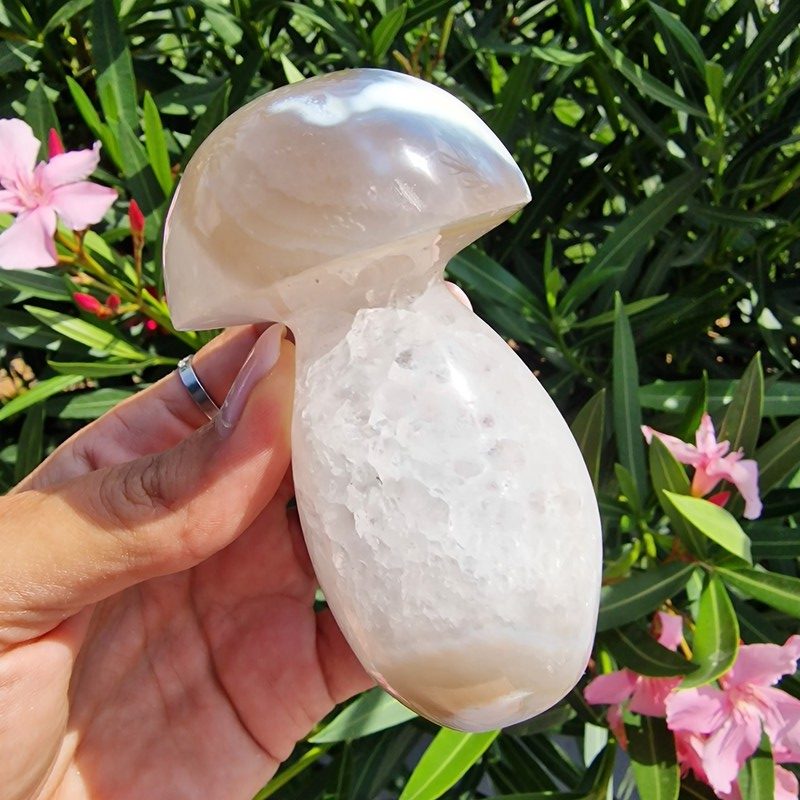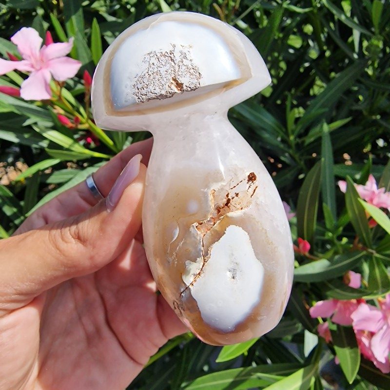 Achát ásványból faragott gomba, Madagaszkárról.