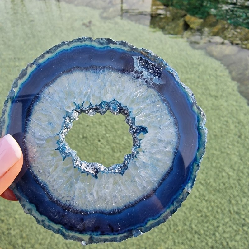 Gyönyörű achát ásvány lap, Brazíliából. Kékre színezett.
