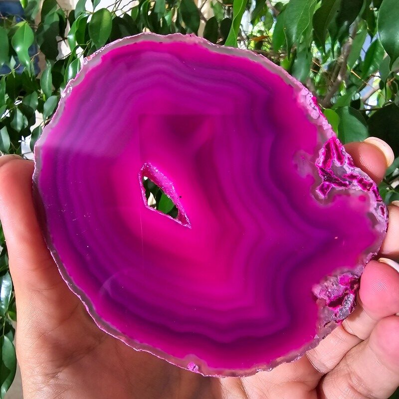 Gyönyörű achát ásvány lap, Brazíliából. Pinkre színezett.