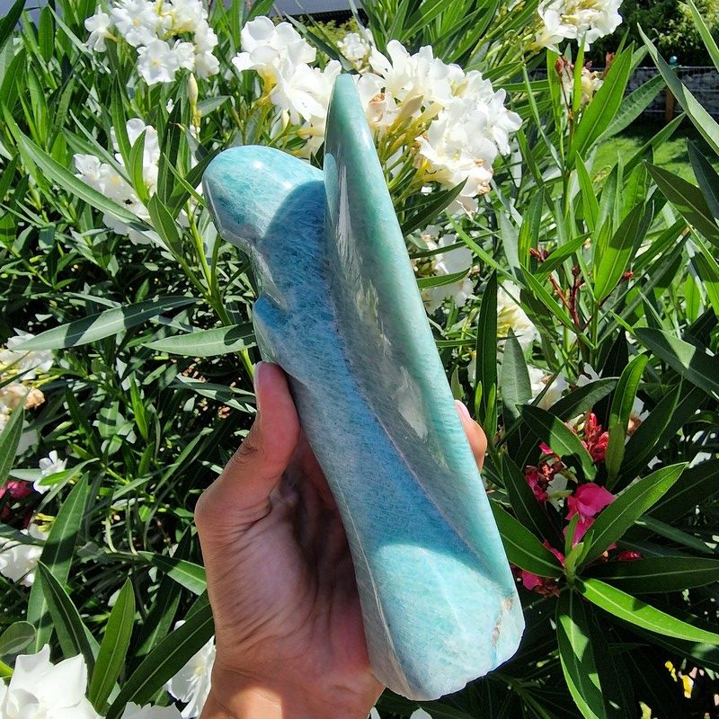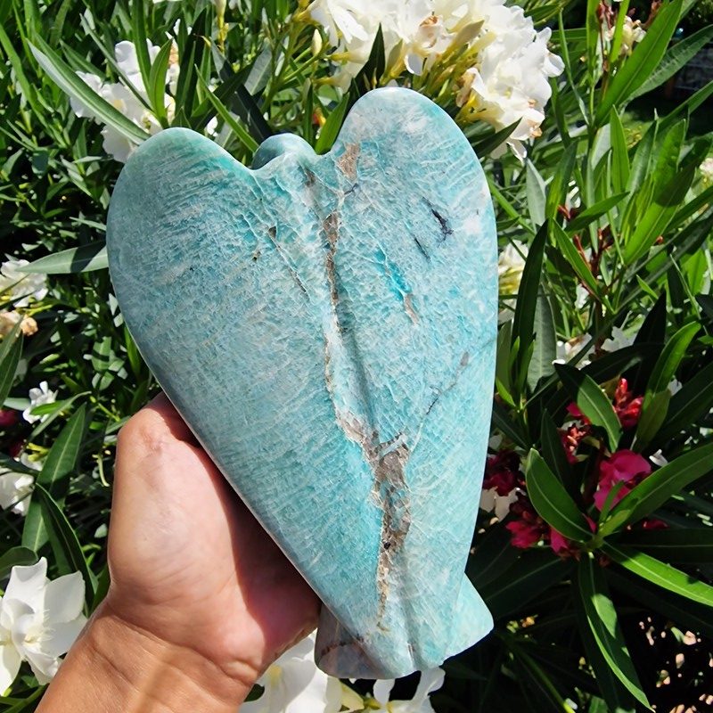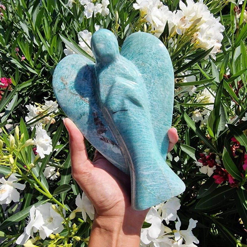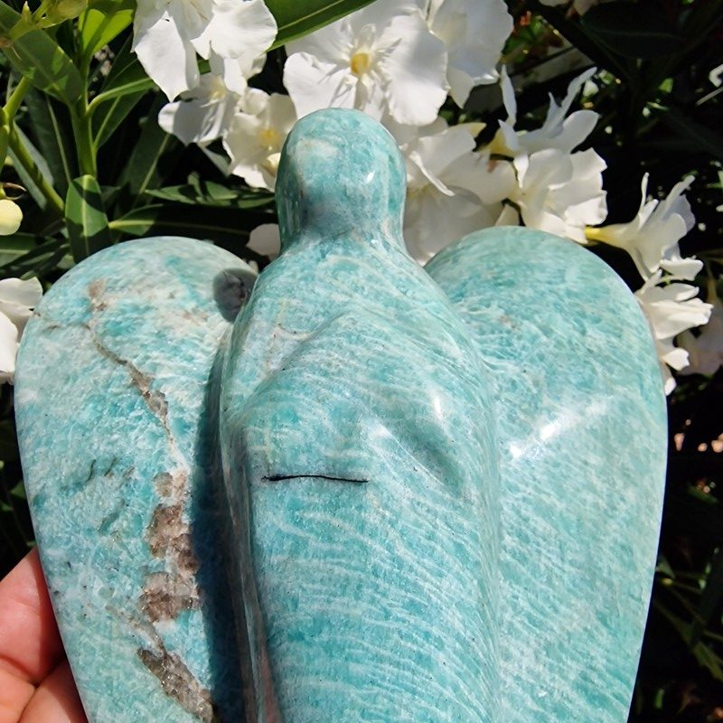 Amazonit ásványból faragott angyal, Madagaszkárról.