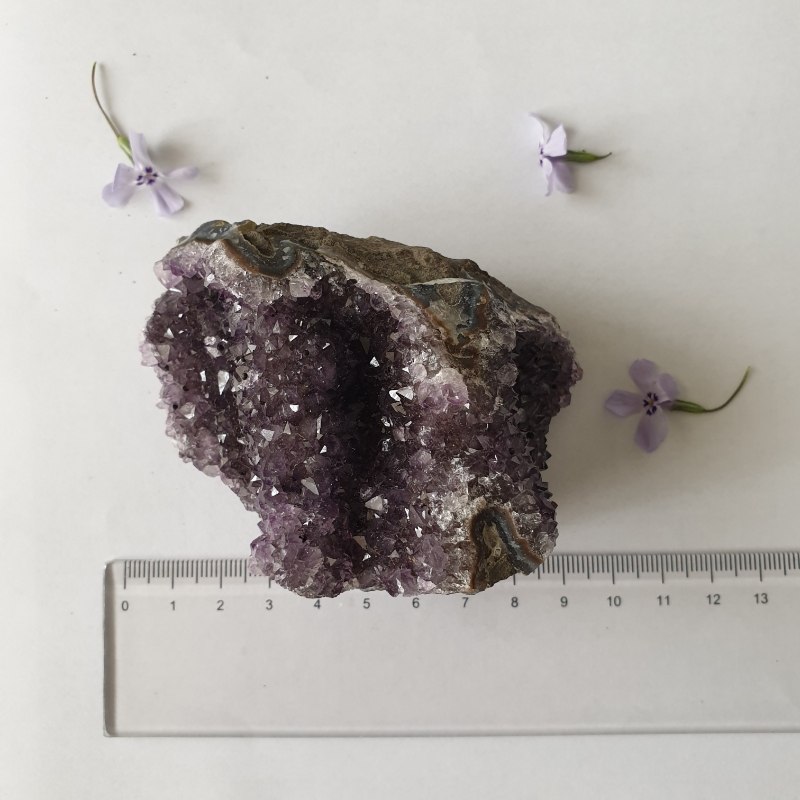 A legnagyobb kedvenc a kvarcváltozatok között, felhasználási területe is széles körű. A lila legkülönbözőbb árnyalataiban, az egész világos ibolyaszínen át a sötét kékesliláig sok árnyalatban fellelhető. Színe nem mindig egységes, gyakran világosabb és sötétebb részleteket látni rajta, hosszan tartó napfény hatására kifakulhat. A sötétebb színű kristályok általában ritkábbak. Igen kemény, rideg anyag, nem hasad, hanem törik.