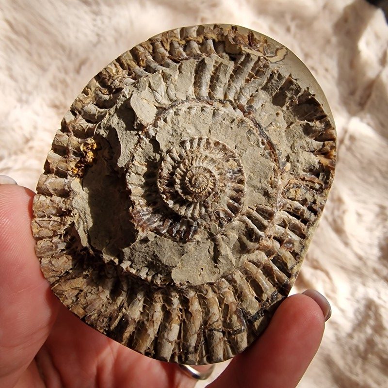 Ammonitesz fosszília lenyomat szeptáriában, Madagaszkárról.