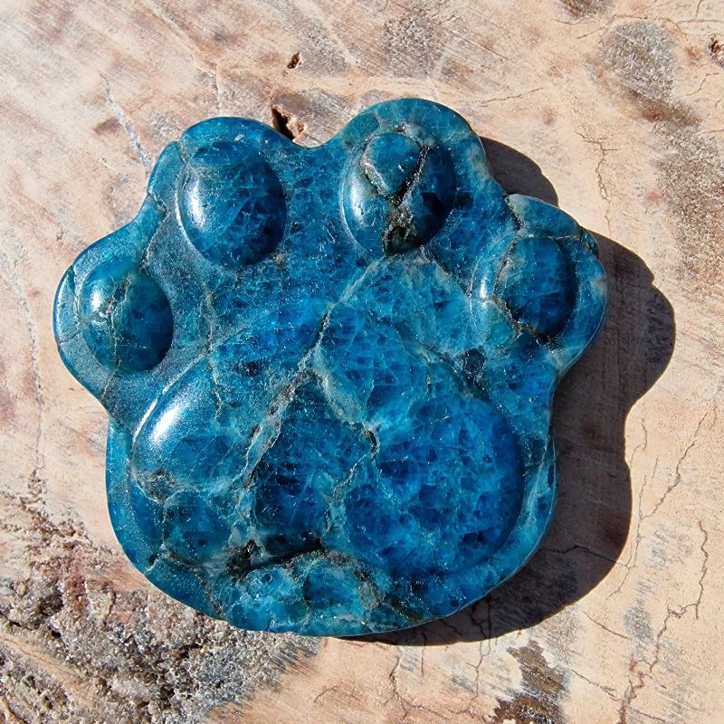 Ez a különleges, apatit ásványból faragott mancs a kommunikáció, a bátorság és az önkifejezés szimbóluma. Az apatit ragyogó kék árnyalatai az óceán mélységét idézik, miközben friss, inspiráló energiával töltenek fel.