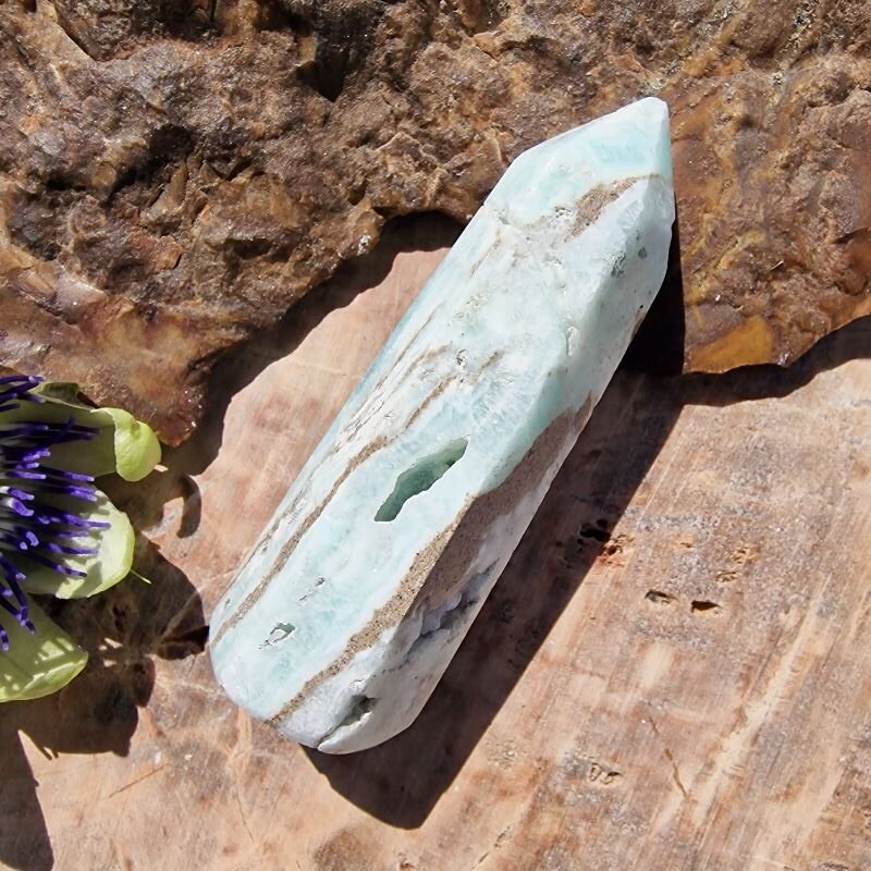 A kék aragonit torony lágy, nyugtató energiát sugároz, amely segít lecsillapítani a zaklatott érzelmeket, és támogatja a belső béke megteremtését. Finom, kékes árnyalatai az óceán nyugalmát idézik, így különleges harmóniát és tisztító energiát hoznak a térbe. A torony forma erősíti és koncentrálja az ásvány gyógyító rezgéseit, miközben felfelé irányítja azokat.