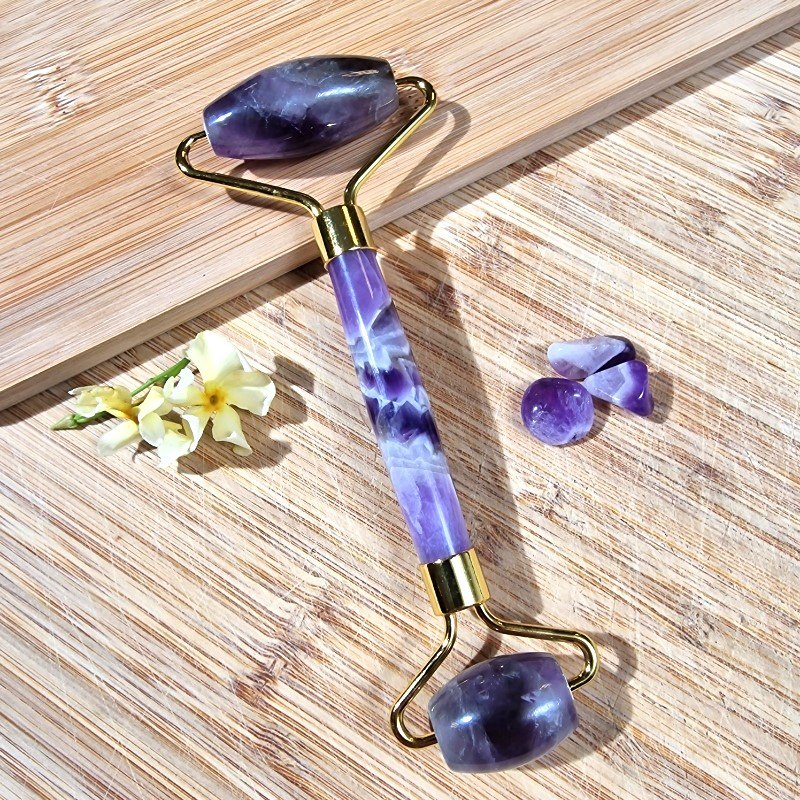 Ametiszt ásványból készített arcmasszírozó roller.