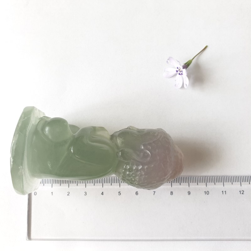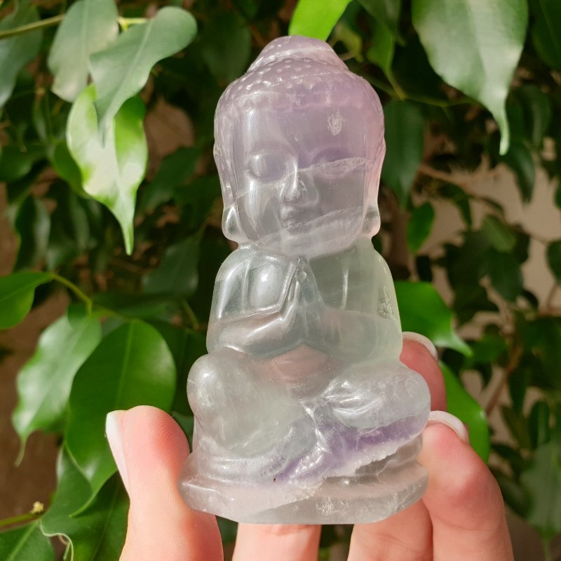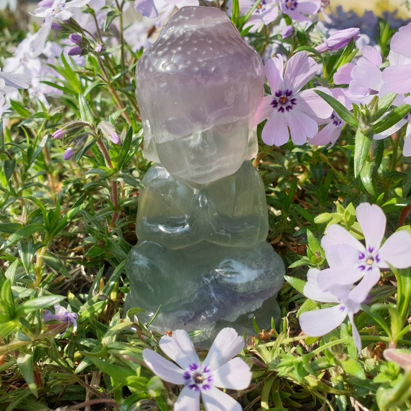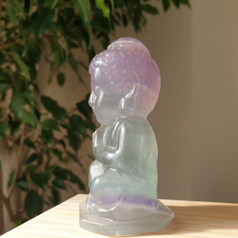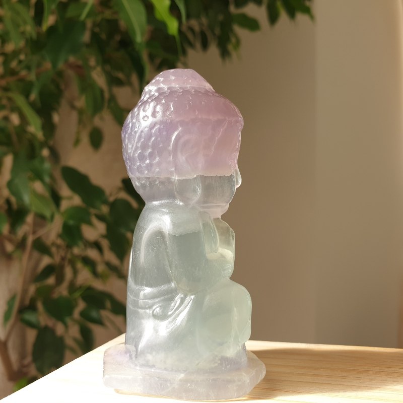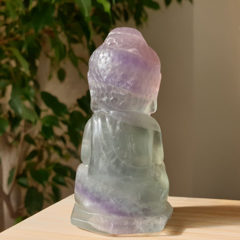 Fluorit ásványból faragott buddha szobor.
