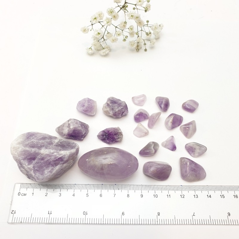 A legnagyobb kedvenc a kvarcváltozatok között, felhasználási területe is széleskörű. A lila legkülönbözőbb árnyalataiban, az egész világos ibolyaszínen át a sötét kékesliláig sok árnyalatban fellelhető. Színe nem mindig egységes, gyakran világosabb és sötétebb részleteket látni rajta, hosszan tartó napfény hatására kifakulhat. A sötétebb színű kristályok általában ritkábbak. Igen kemény, rideg anyag, nem hasad, hanem törik. A spirituális fejlődés köve.