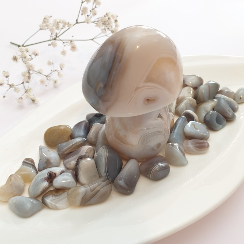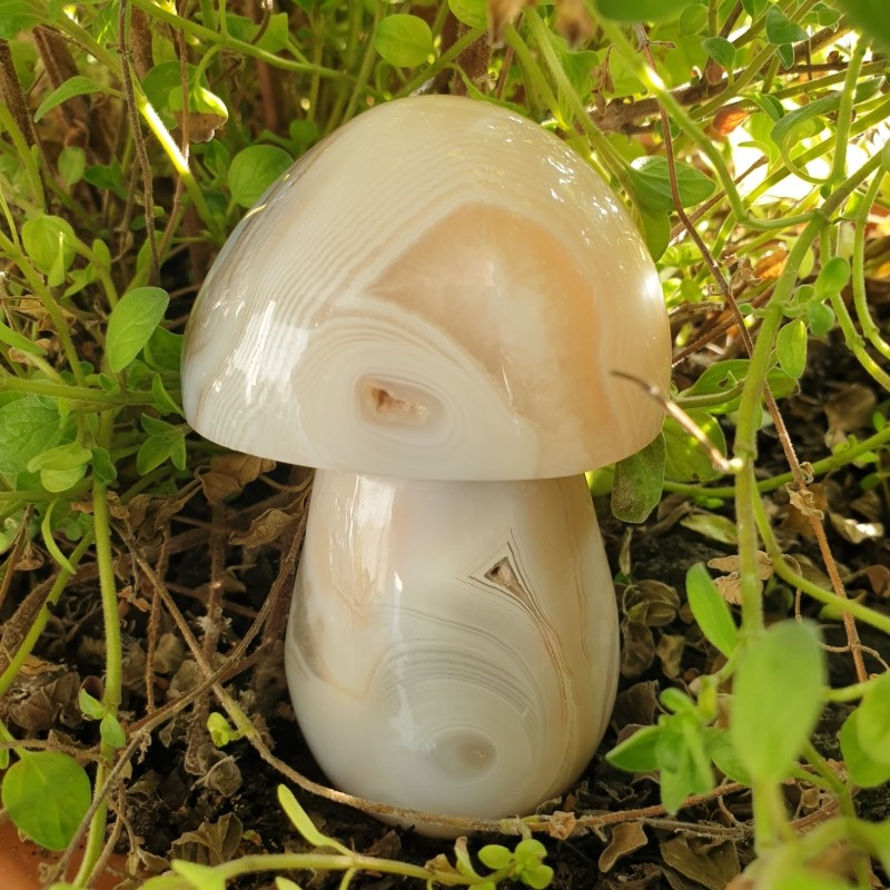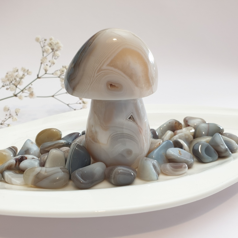 Egyedi, achát gomba alak, szemet gyönyörködtető dísze lehet a helyiségnek, nem is beszélve az ásványok esetleges jótékony lelki és gyógyhatásairól.