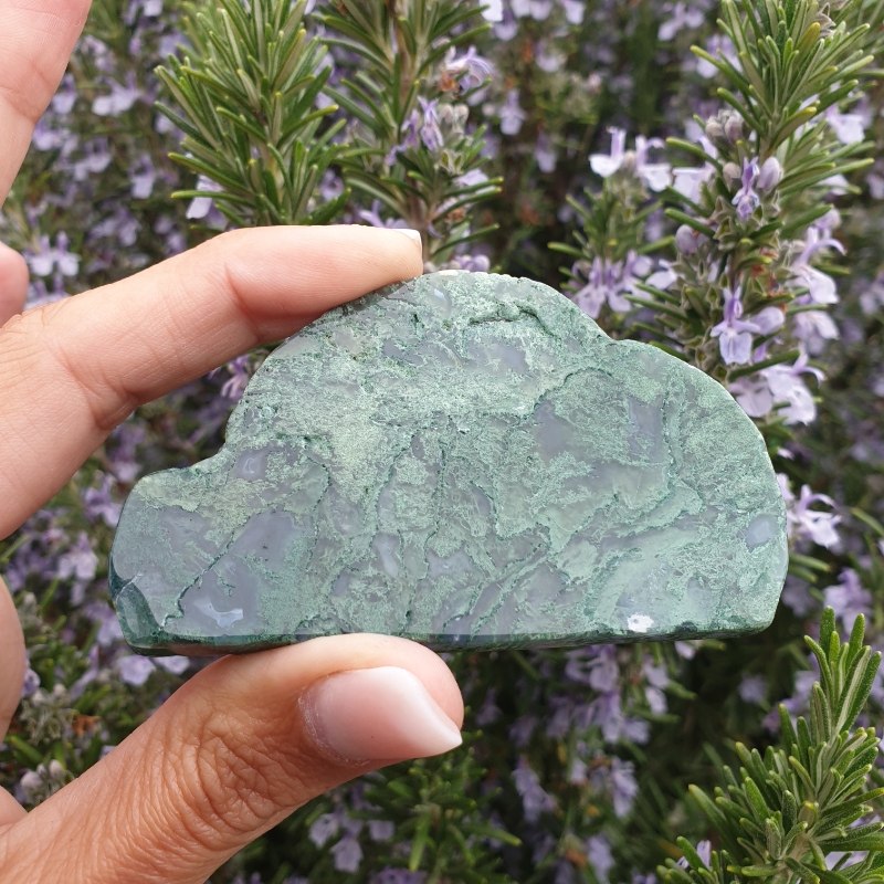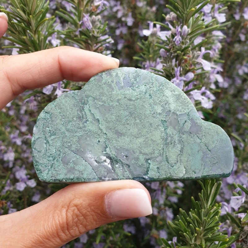 Kézzel faragott, moha achát ásvány felhő.
