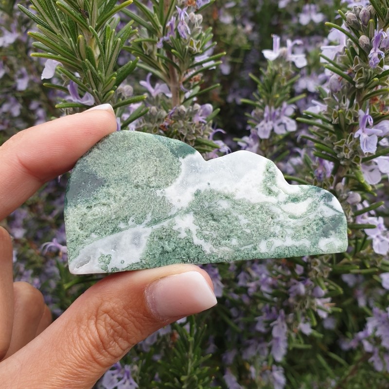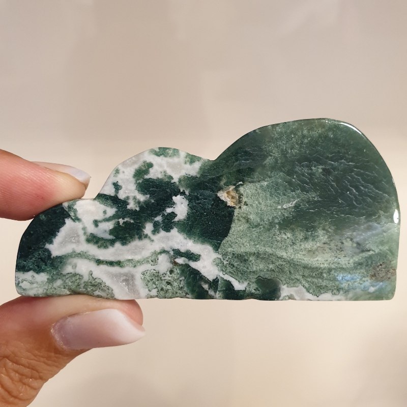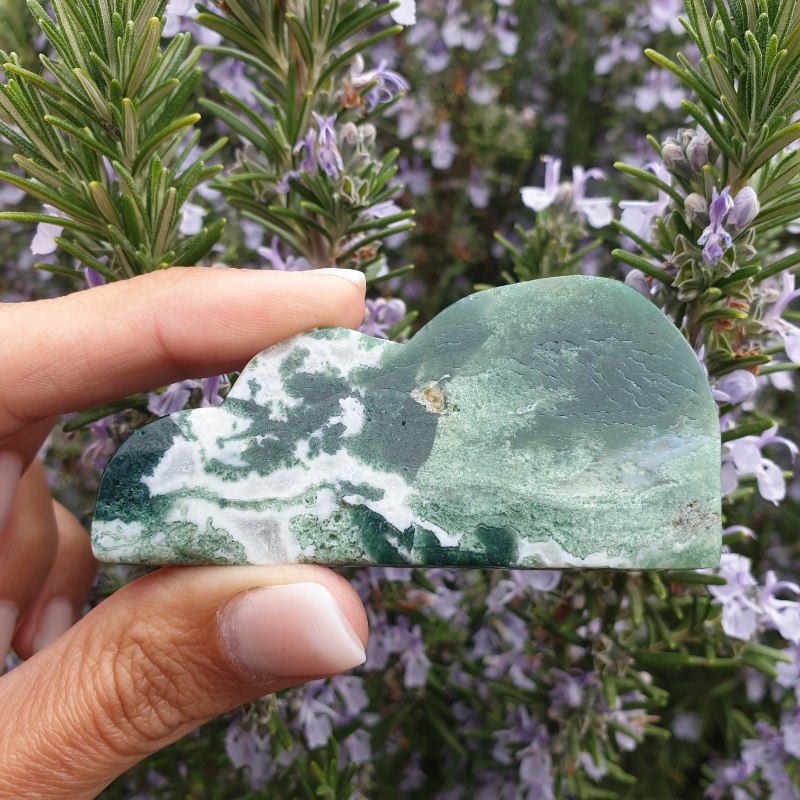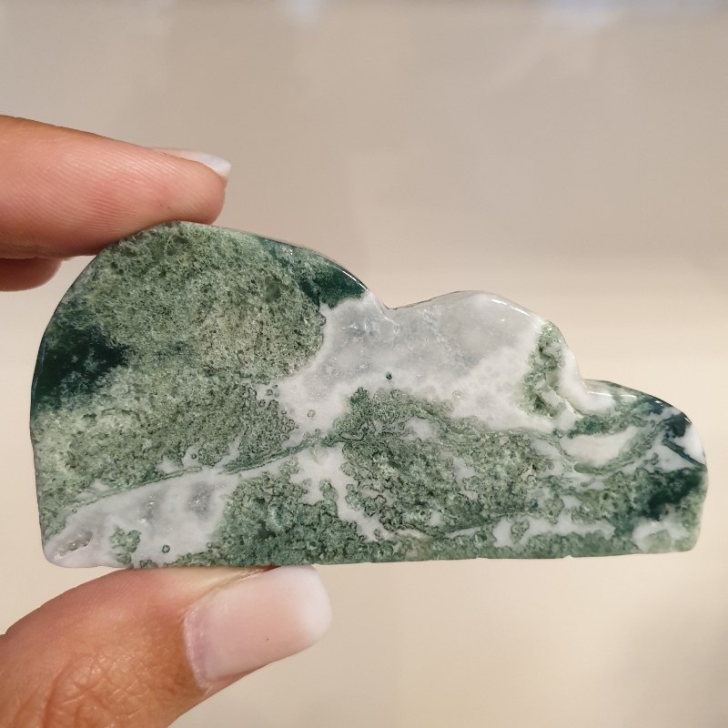 Kézzel faragott, moha achát ásvány felhő.