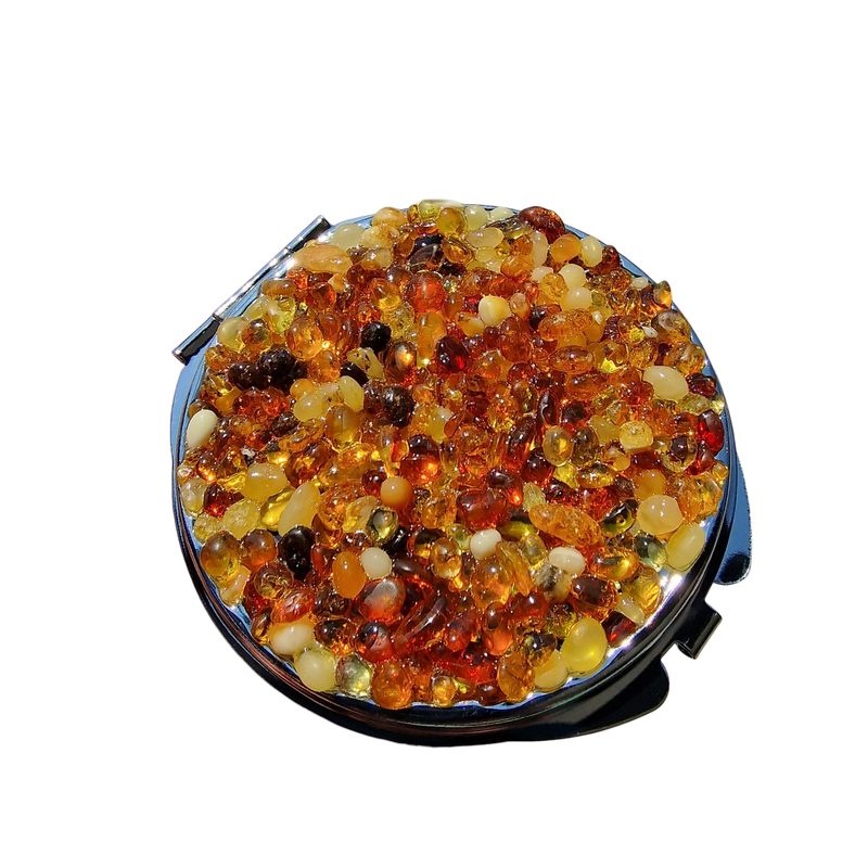 Elegáns és különleges borostyán kézi tükör (6 cm), amely a praktikumot ötvözi a természetes szépséggel. A tükör fedlapját valódi borostyán díszíti, amely nemcsak egyedi megjelenést kölcsönöz, hanem spirituális jelentéssel is bír.