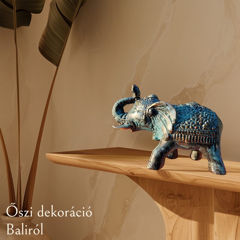 Különleges, kézzel készült Baliról származó bronz elefánt szobrocska, amely az egzotikus művészet és a tradicionális balinéz kézművesség tökéletes megtestesítője. Az elefánt a bölcsesség, erő és szerencse szimbóluma, így ez a dekorációs tárgy nemcsak gyönyörű kiegészítője lehet otthonodnak, hanem spirituális jelentést is hordoz.