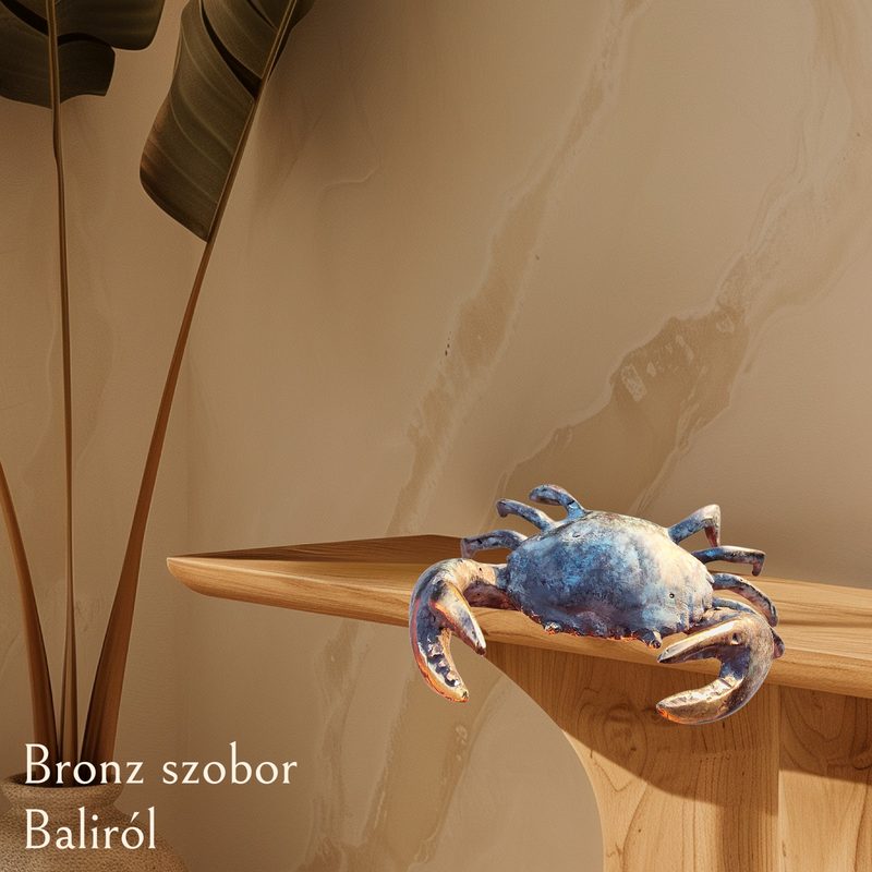 Baliról származó bronz rák szobrocska, amely a balinéz kézművesség mestermunkája. A rák a megújulás, a védelem és az alkalmazkodóképesség szimbóluma, így nemcsak stílusos lakásdekoráció, hanem spirituális jelentést is hordoz.