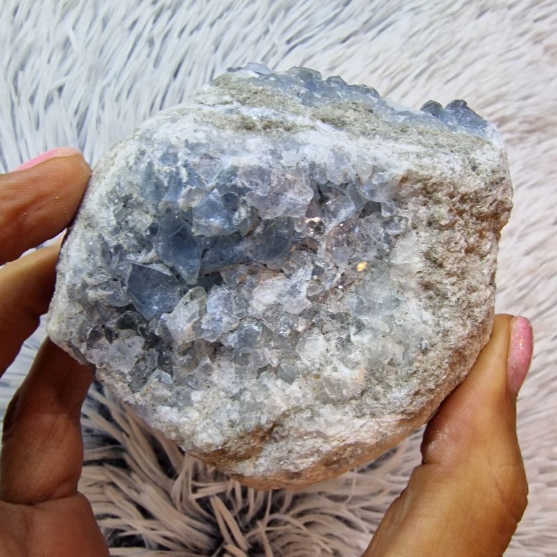 A cölesztin az egyik legkedveltebb kék ásvány, amelyet gyakran társítanak nyugalommal, tisztasággal és harmonizáló energiákkal. Nemcsak ásványgyűjtők körében népszerű, hanem lakberendezési dísztárgyként, meditációs térben vagy spirituális gyűjtemény részeként is kiváló választás.