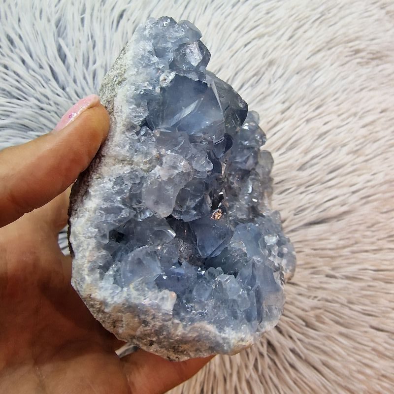 A cölesztin az egyik legkedveltebb kék ásvány, amelyet gyakran társítanak nyugalommal, tisztasággal és harmonizáló energiákkal. Nemcsak ásványgyűjtők körében népszerű, hanem lakberendezési dísztárgyként, meditációs térben vagy spirituális gyűjtemény részeként is kiváló választás.