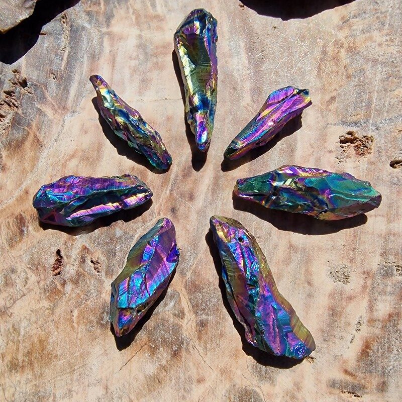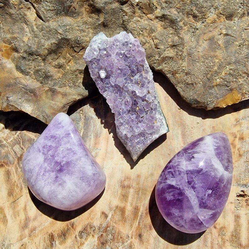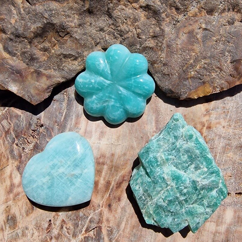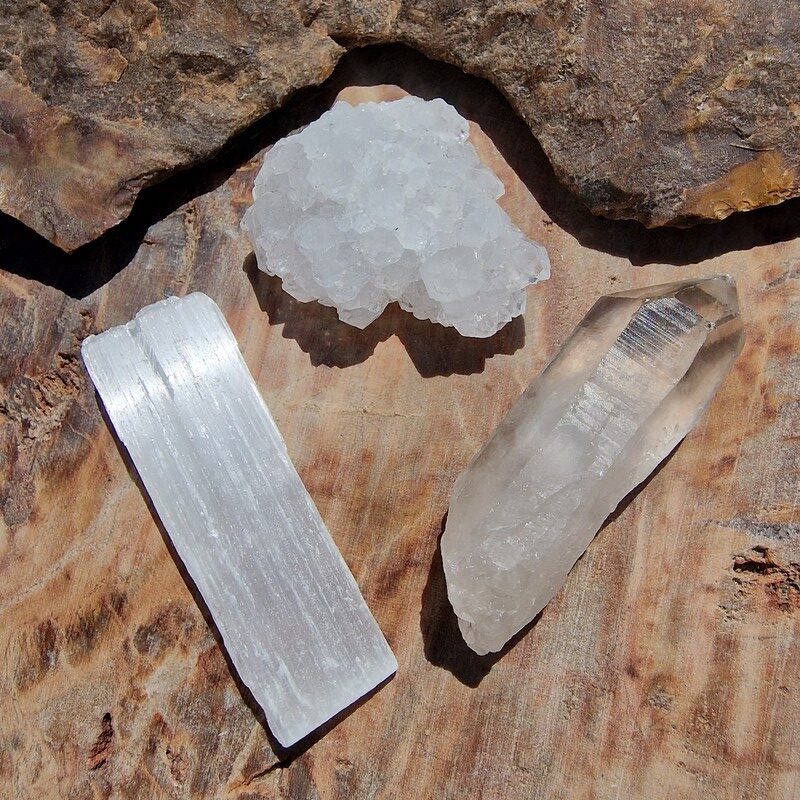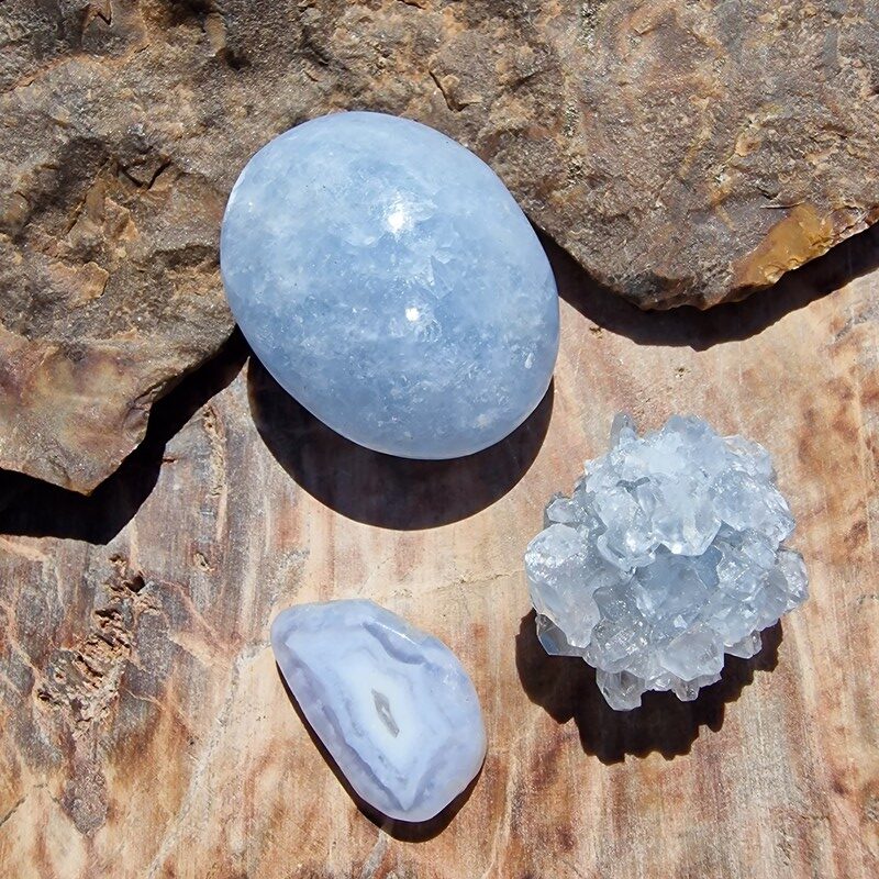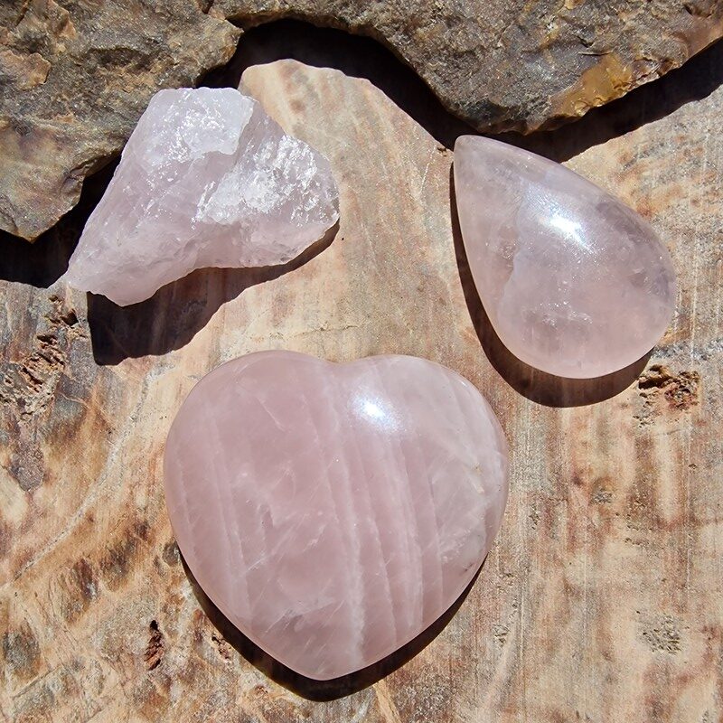 Rózsakvarc, ametiszt, hegyikristály, szelenit,amazonit, hematit, kalcedon,kék kalcit, cölesztin ásványokból. Marokkóból , Kínából és Madagaszkárról származnak.