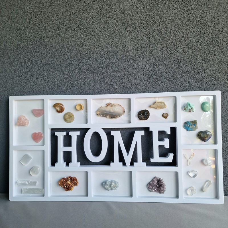 Ásványokkal és fosszíliákkal díszített , akasztható fali dísz, dekoráció.