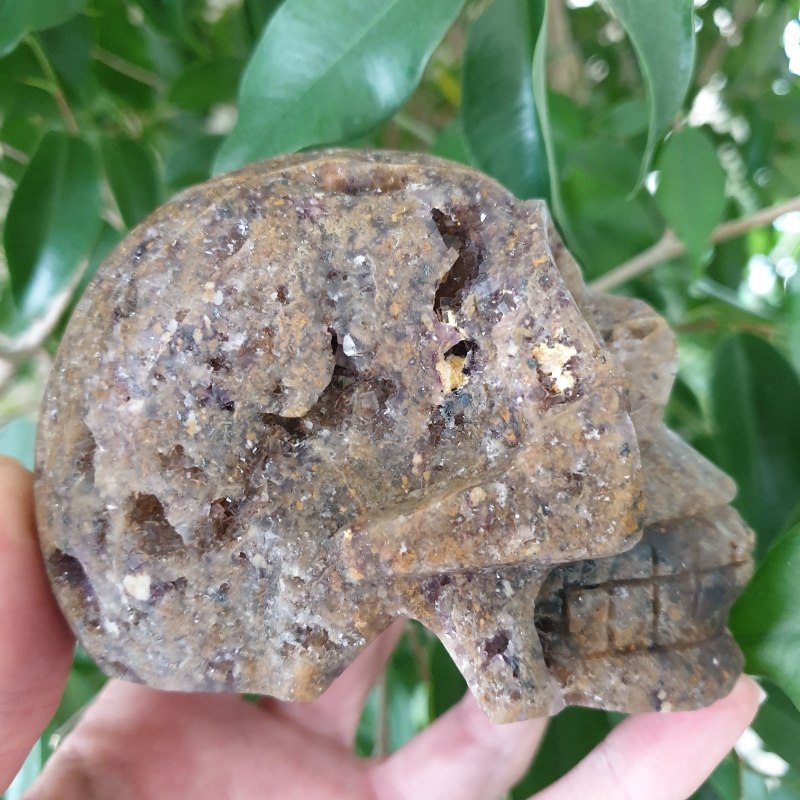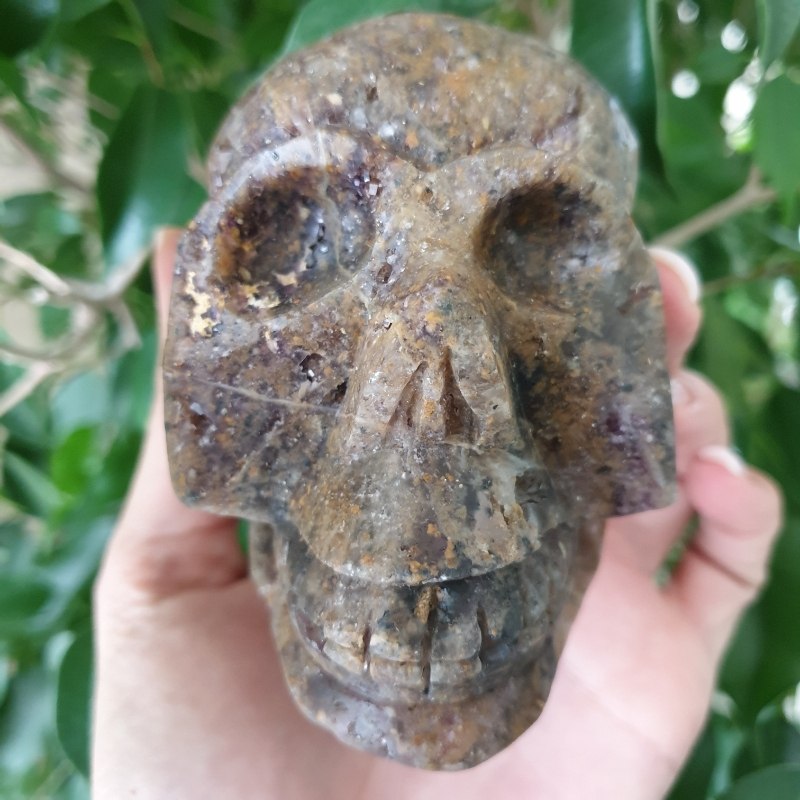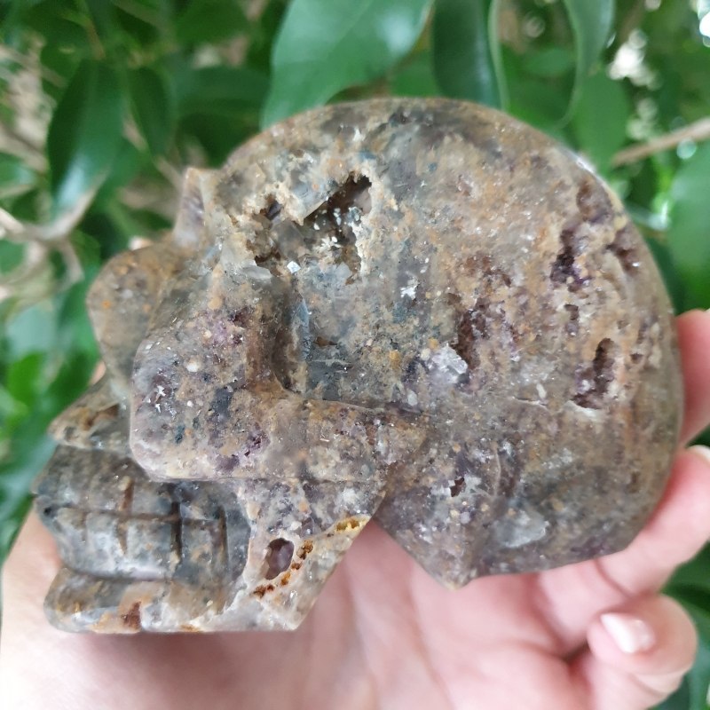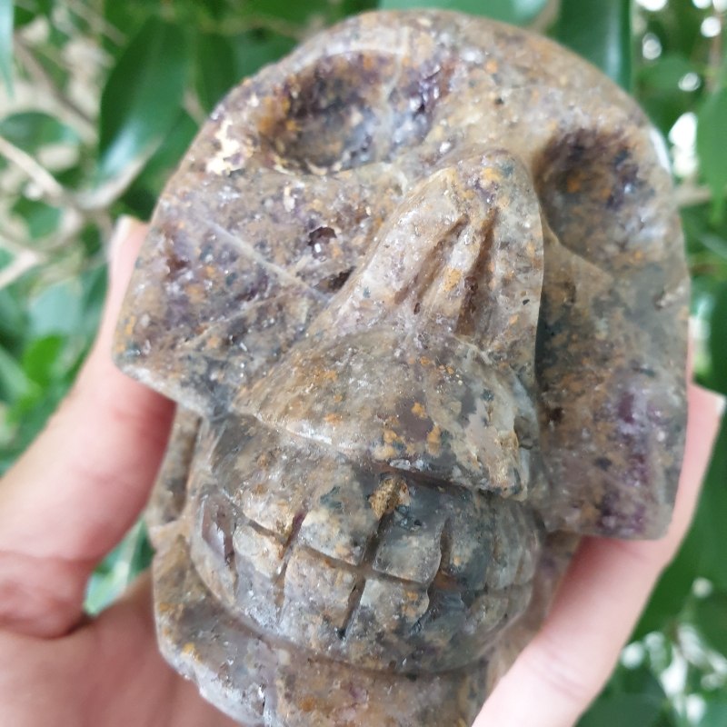 Faragott, fluorit ásvány koponya. 10,5 x 6,5 cm