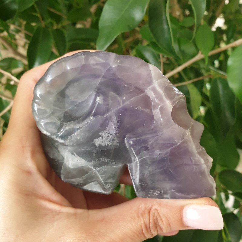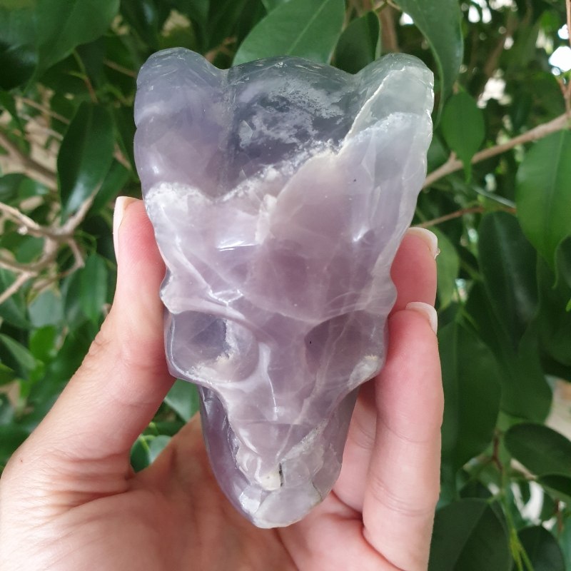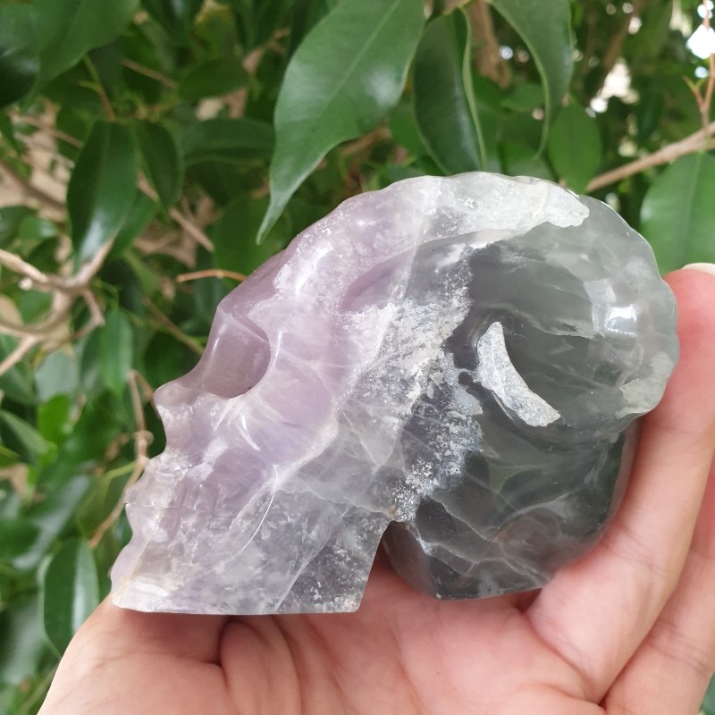 Faragott, fluorit ásvány koponya. 9 x 5,5 cm