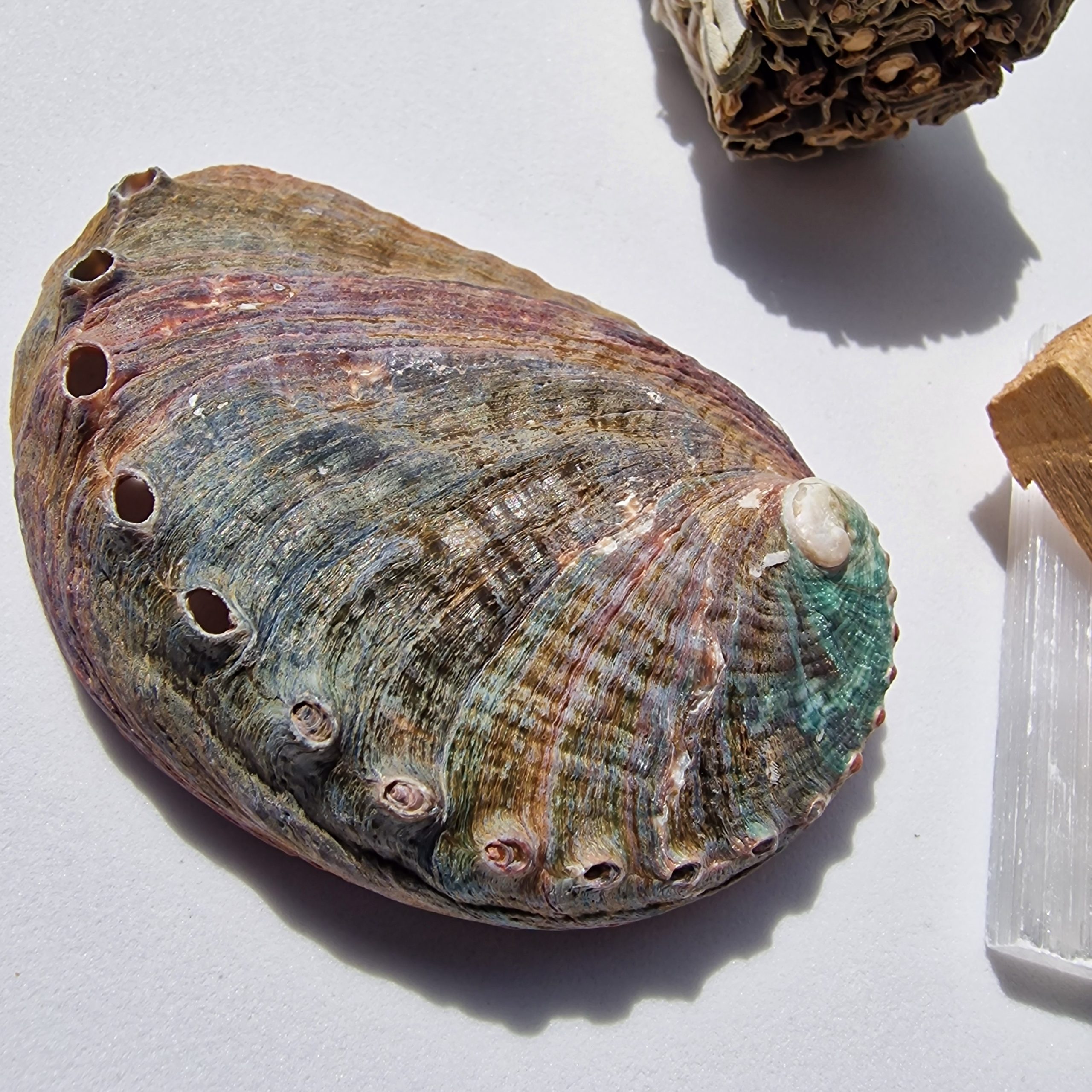 Természetes, abalone kagylóhéj: hagyományosan füstöléshez használt tál, mely gyönyörű színeivel díszítő elemként is megállja a helyét.