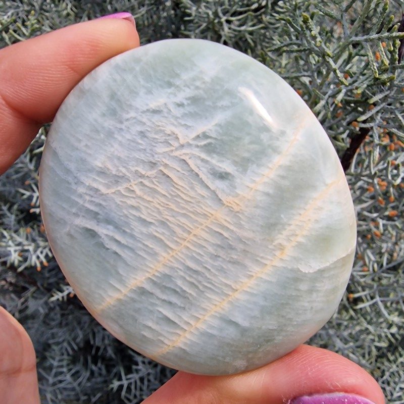 Ez a polírozott marokkő méretének és formájának köszönhetően könnyen kézbe fogható, ideális meditációhoz, relaxációhoz vagy zsebben hordva állandó energetikai támogatáshoz. Egyedi zöld színe szürkés és sárgás tónusokkal keveredve minden darabot különlegessé tesz.