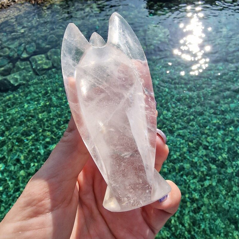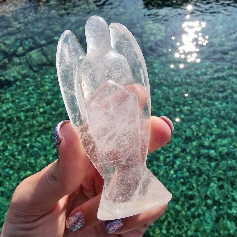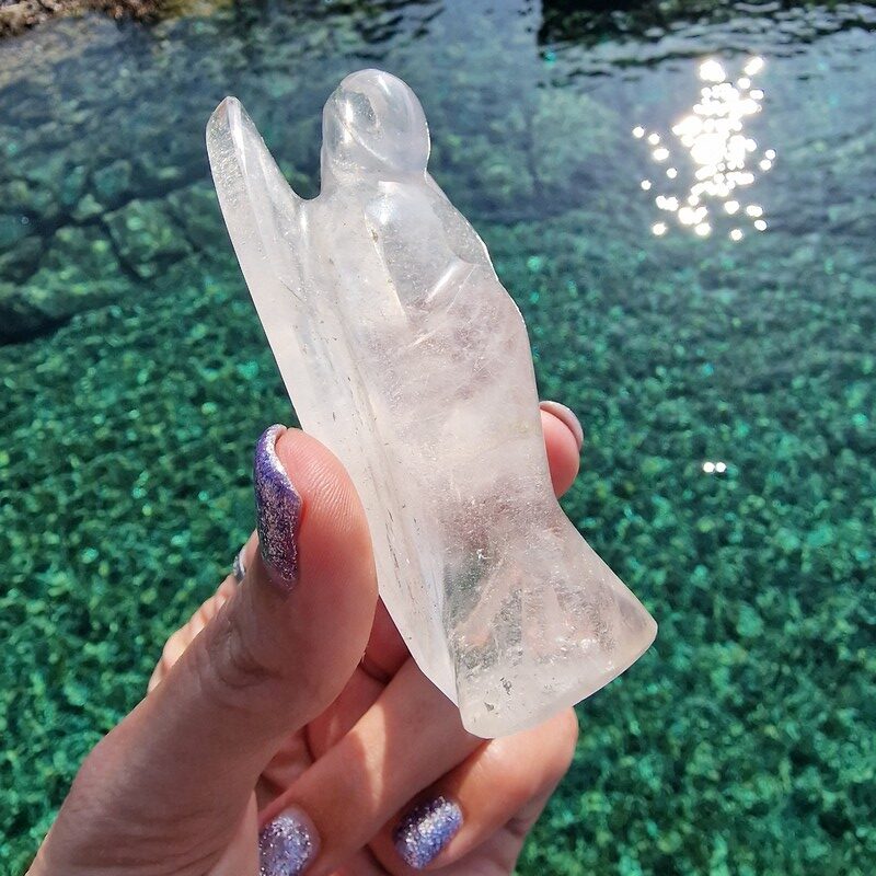 Hegyikristály ásványból faragott angyal, Madagaszkárról.