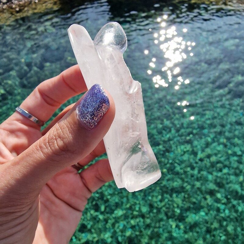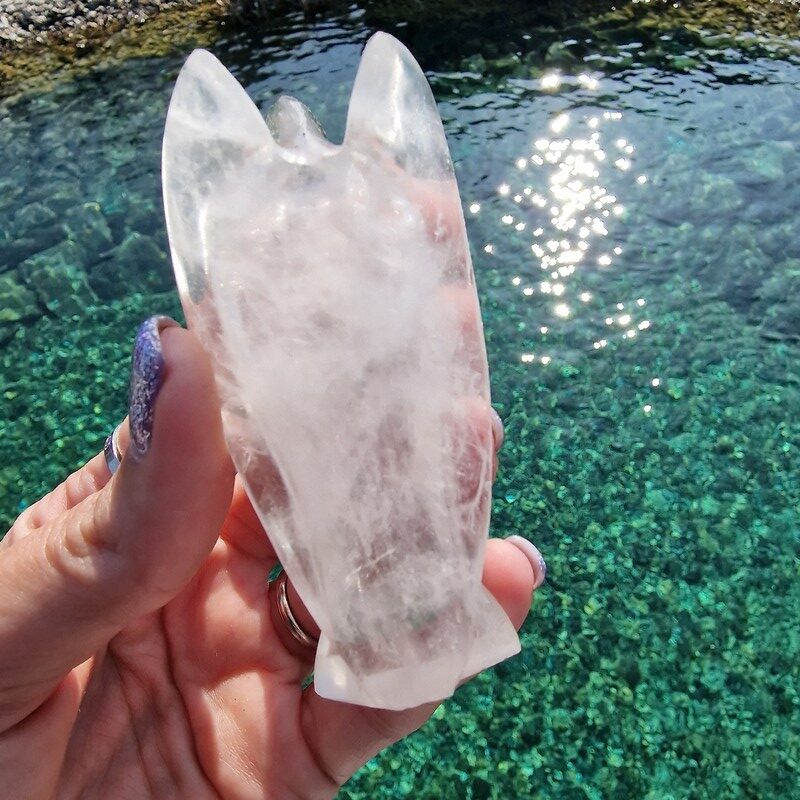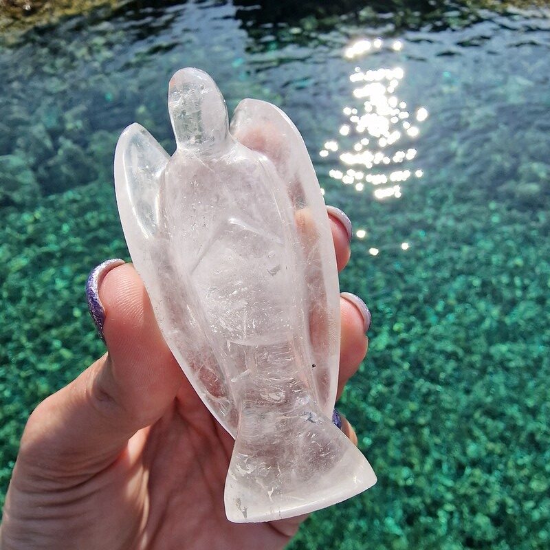 Hegyikristály ásványból faragott angyal, Madagaszkárról.