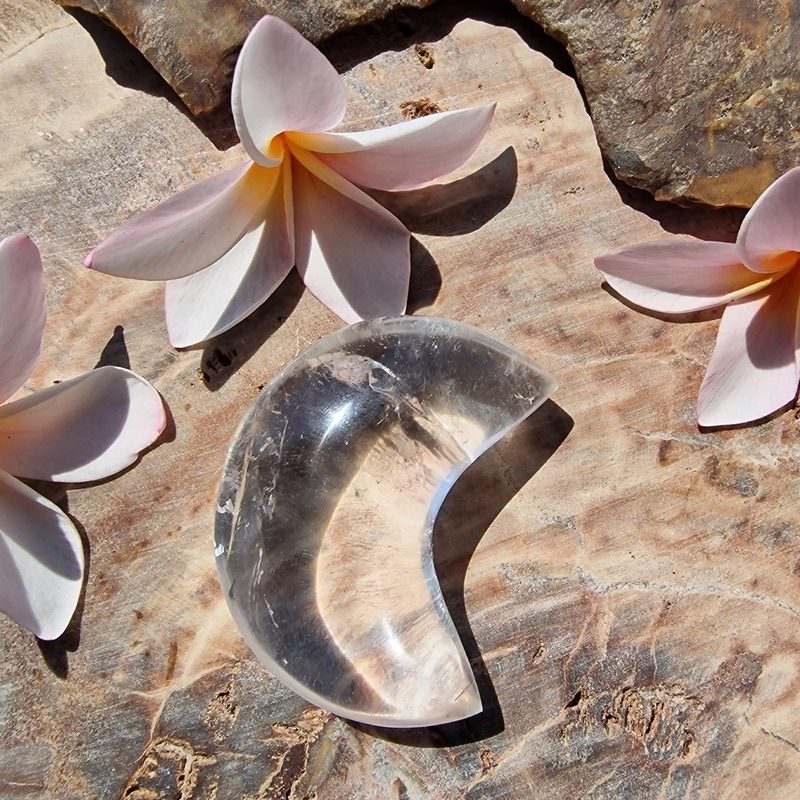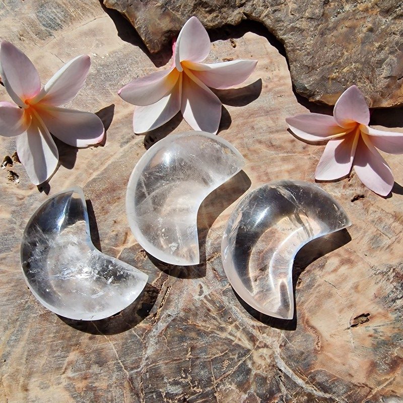 Hegyikristály ásványból faragott félhold, Madagaszkárról.