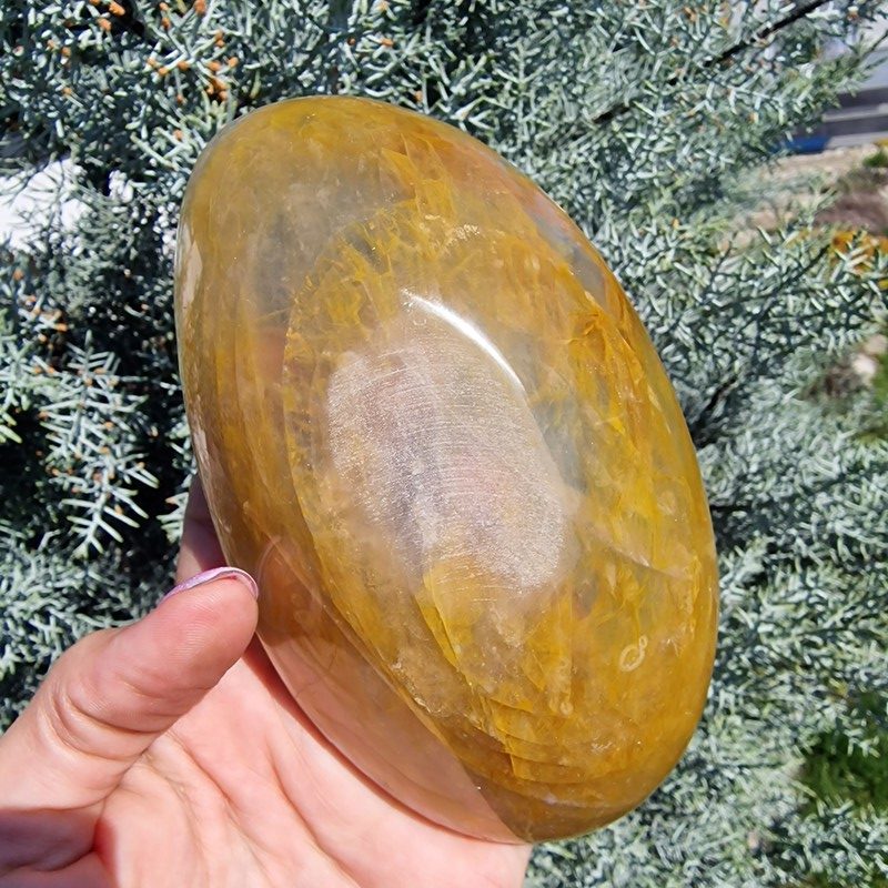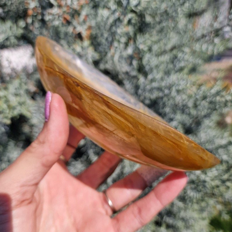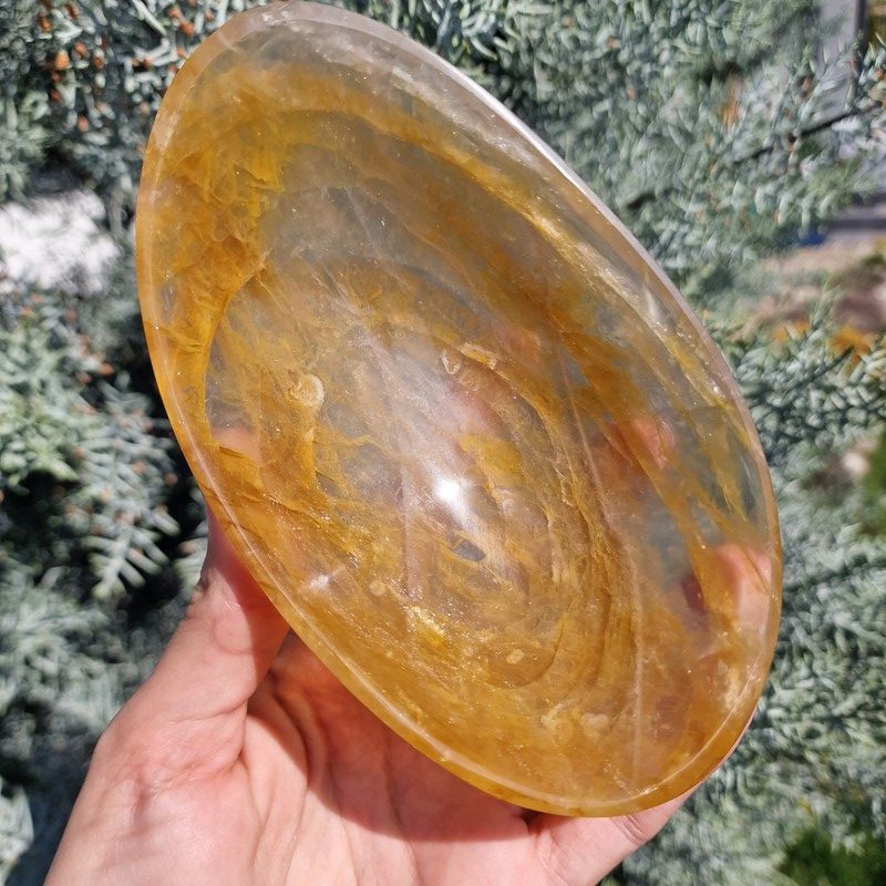 Sárga hematoid kvarc ásványból faragott tál, Madagaszkárról.