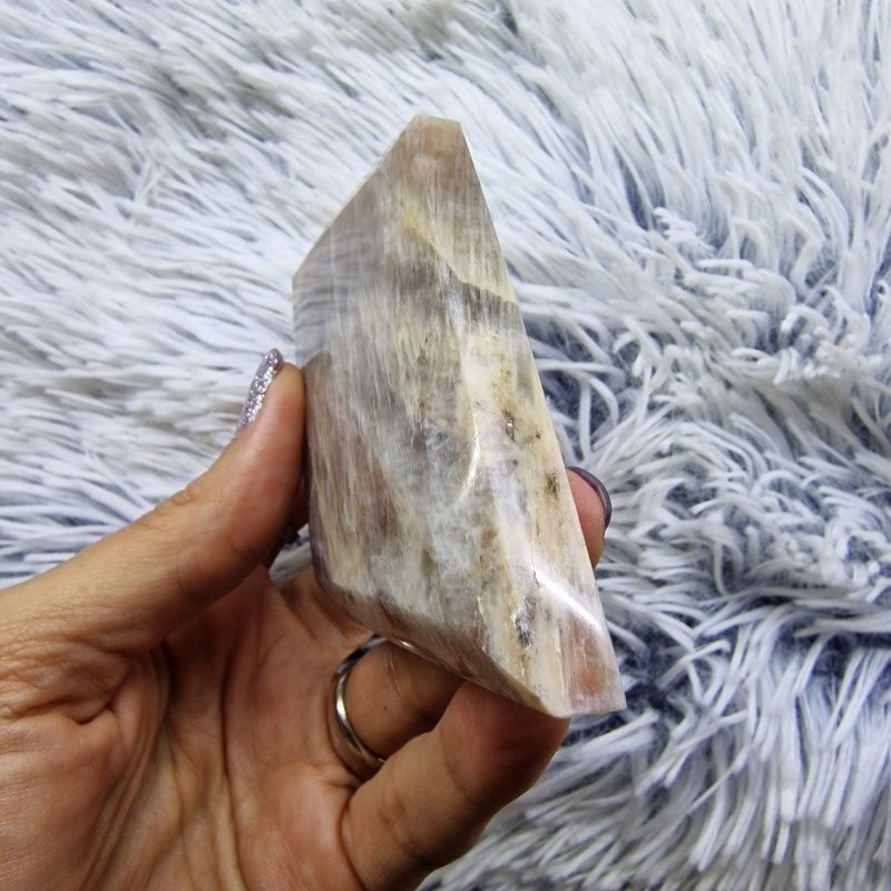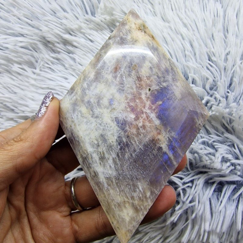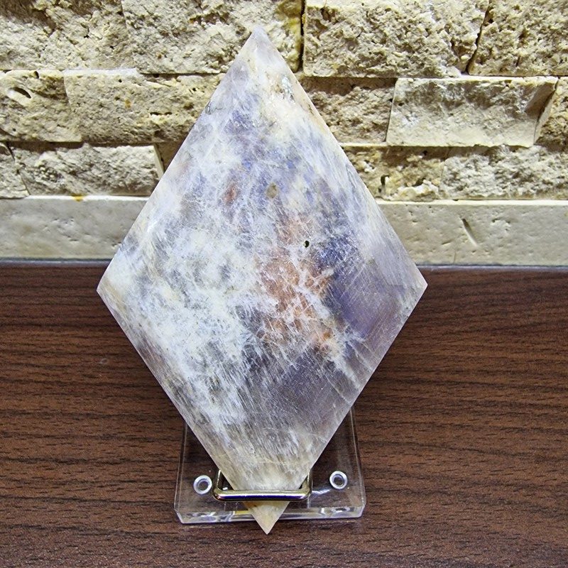Gyönyörű krém holdkő ásvány rombusz. Tartóállvánnyal együtt küldjük.