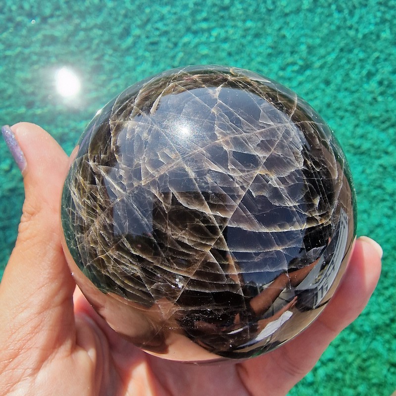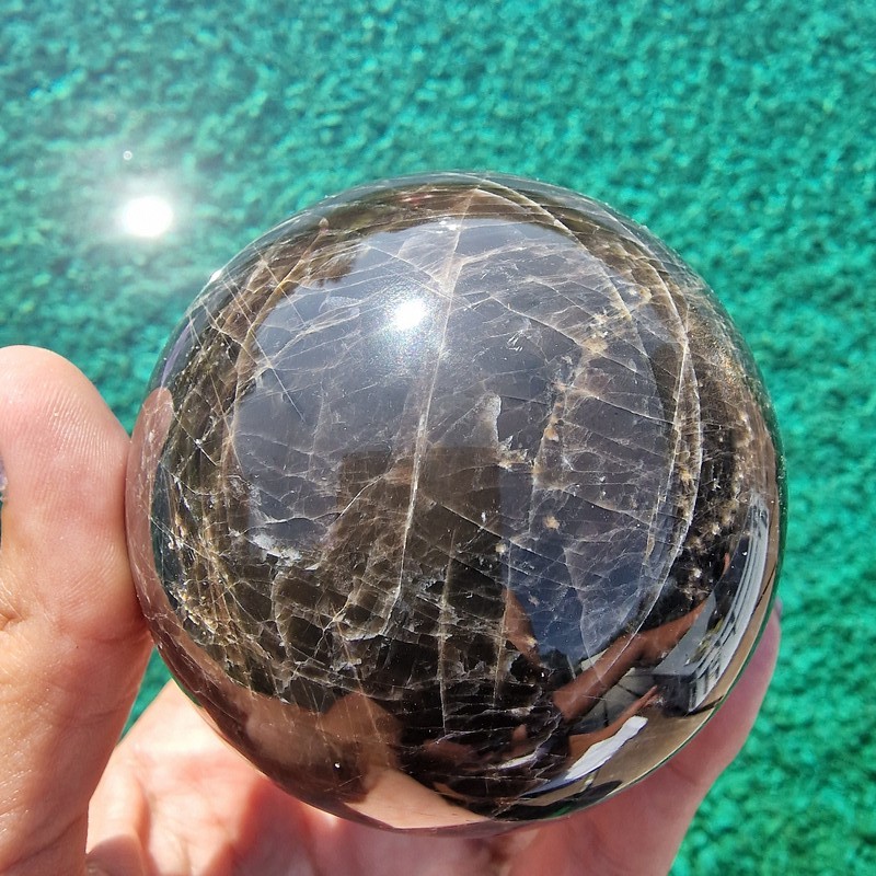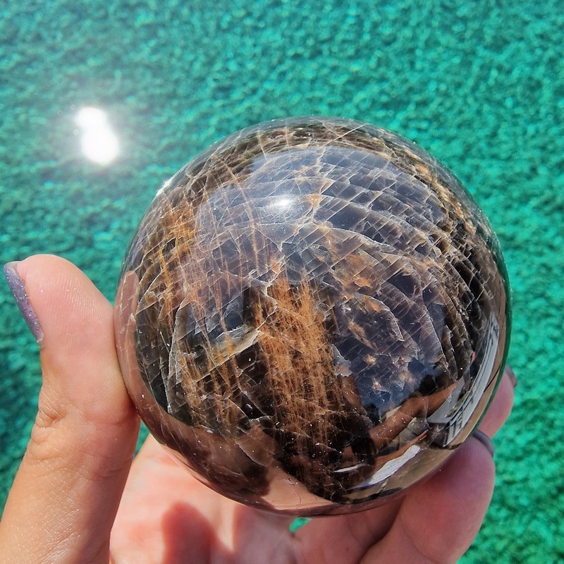 Fekete holdkő ásvány golyó Madagaszkárról. Amennyiben nagy, exkluzív ásványt szeretnél, keress nyugodtan emailben, mert nem kerülnek fel a webshopba.