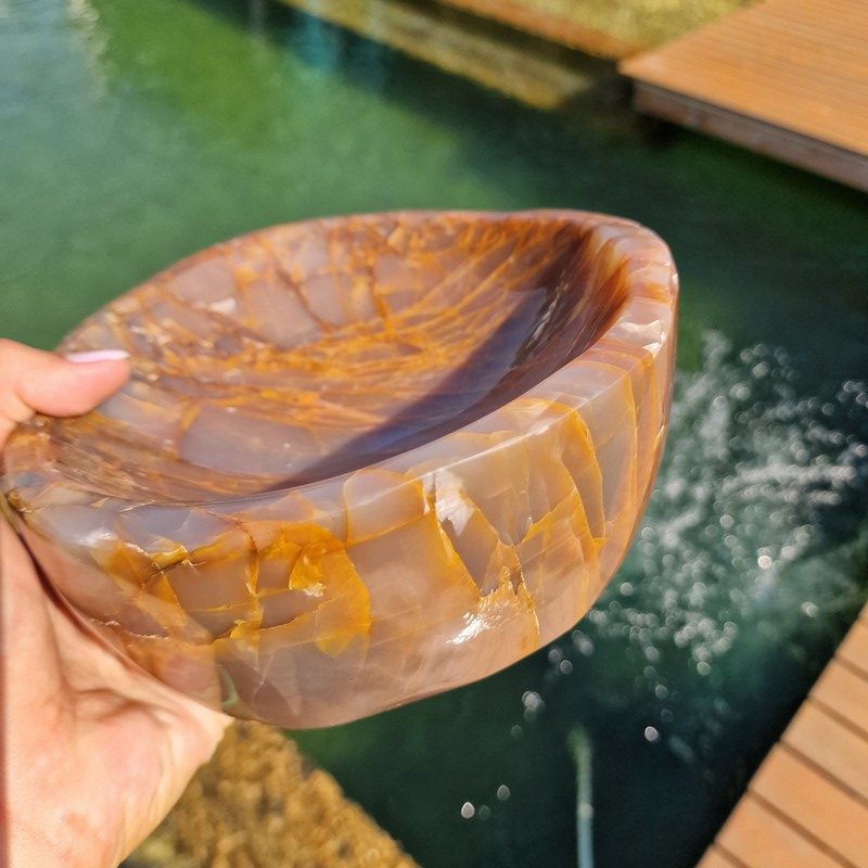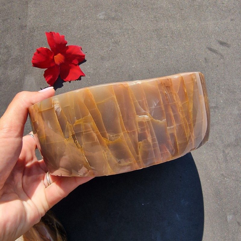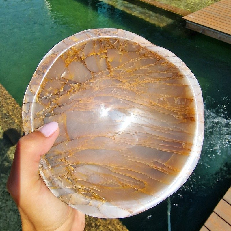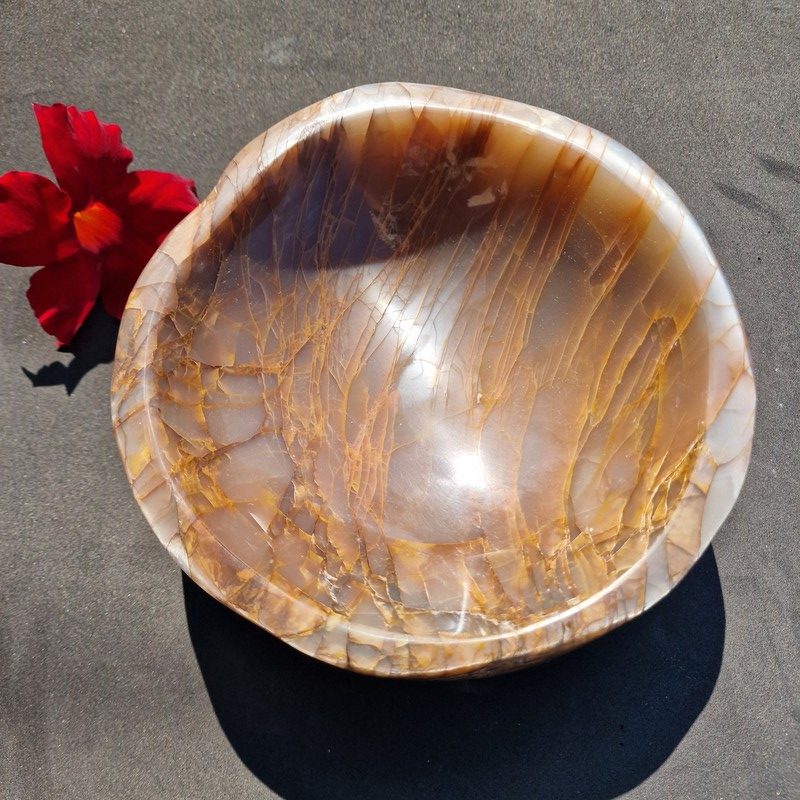 Krém holdkő ásványból faragott tál, Madagaszkárról.
