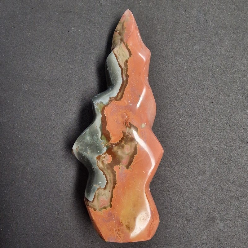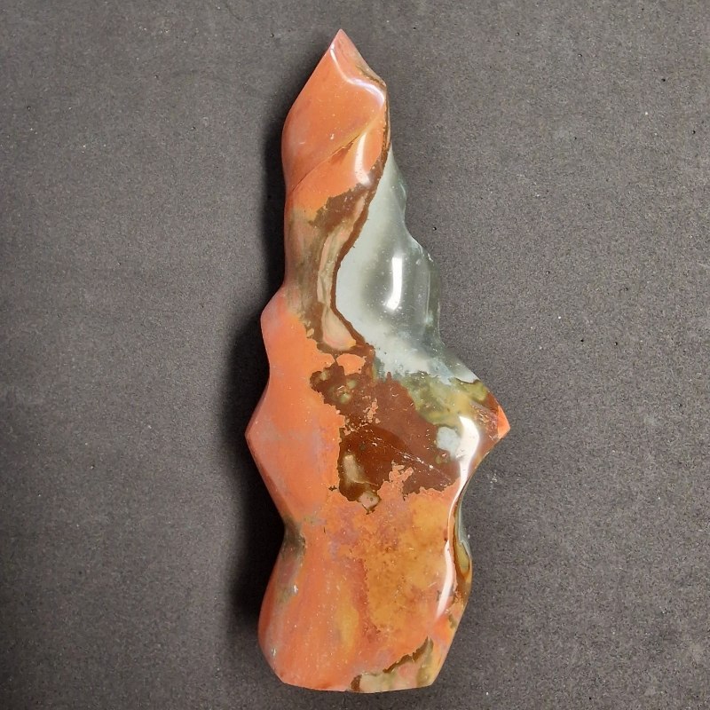 Polikróm jáspisból faragott ásvány láng.