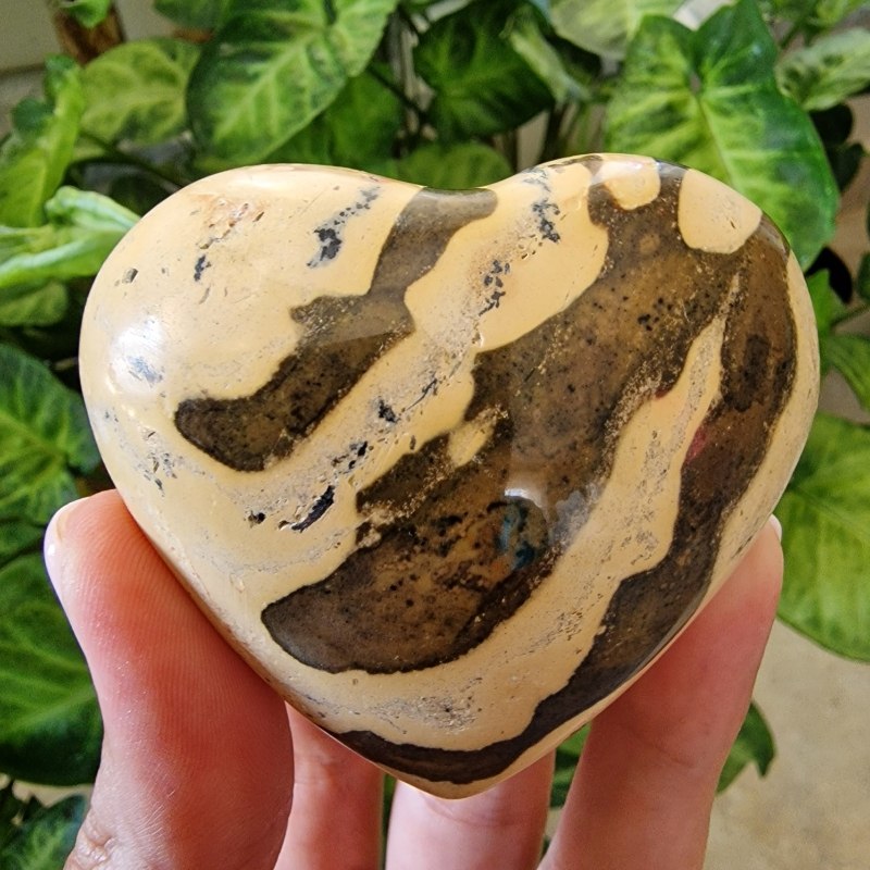 Gyönyörű, butter jasper ásvány szív, Madagaszkárról. Nálunk elég ritkán találkozni vele, pedig már az ókori,egyiptomi, perzsa birodalmak idején is használták ékszerek, dísztárgyak díszítésére. Elősegíti a gyógyulást.