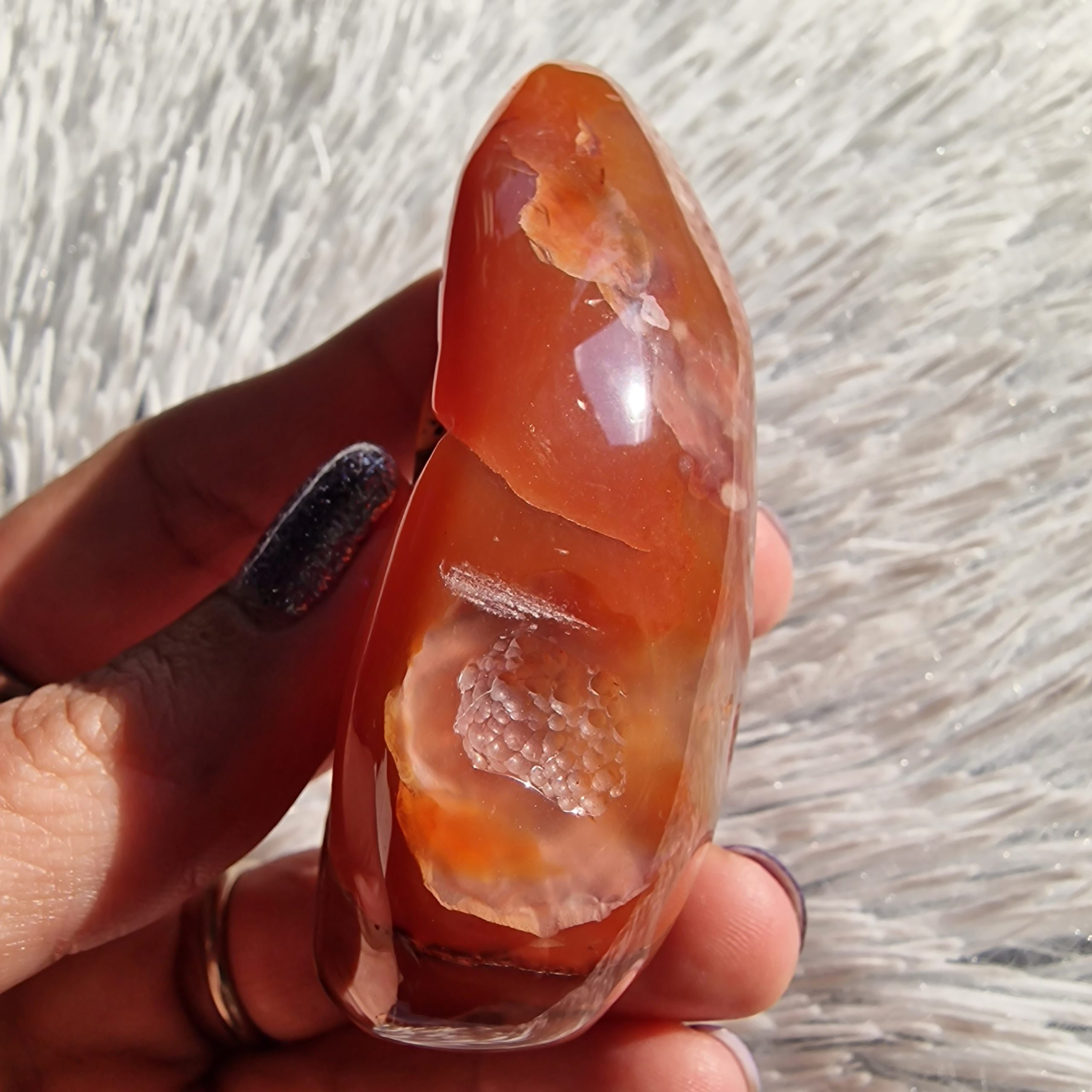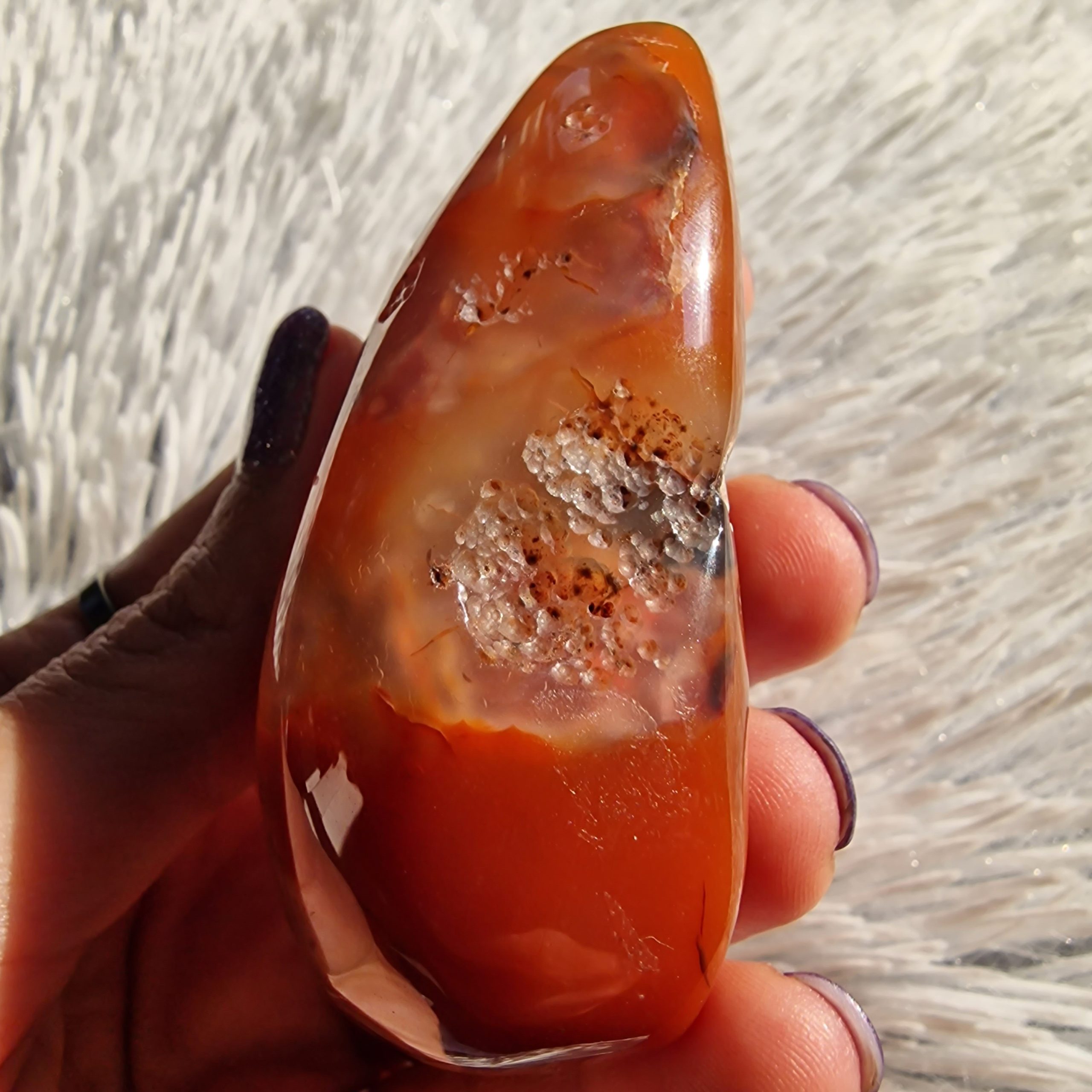 Nem szabályos alakú karneol ásvány tojás Madagaszkárról, különlegesen szép,egyedi darab.