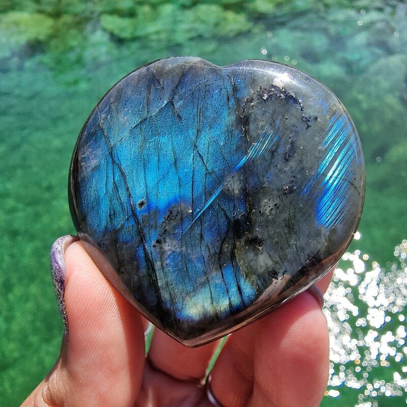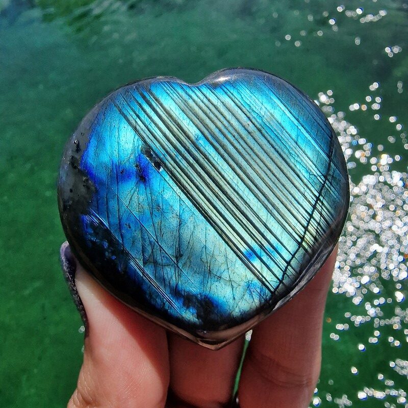 Gyönyörű labradorit ásvány szív, Madagaszkárról.