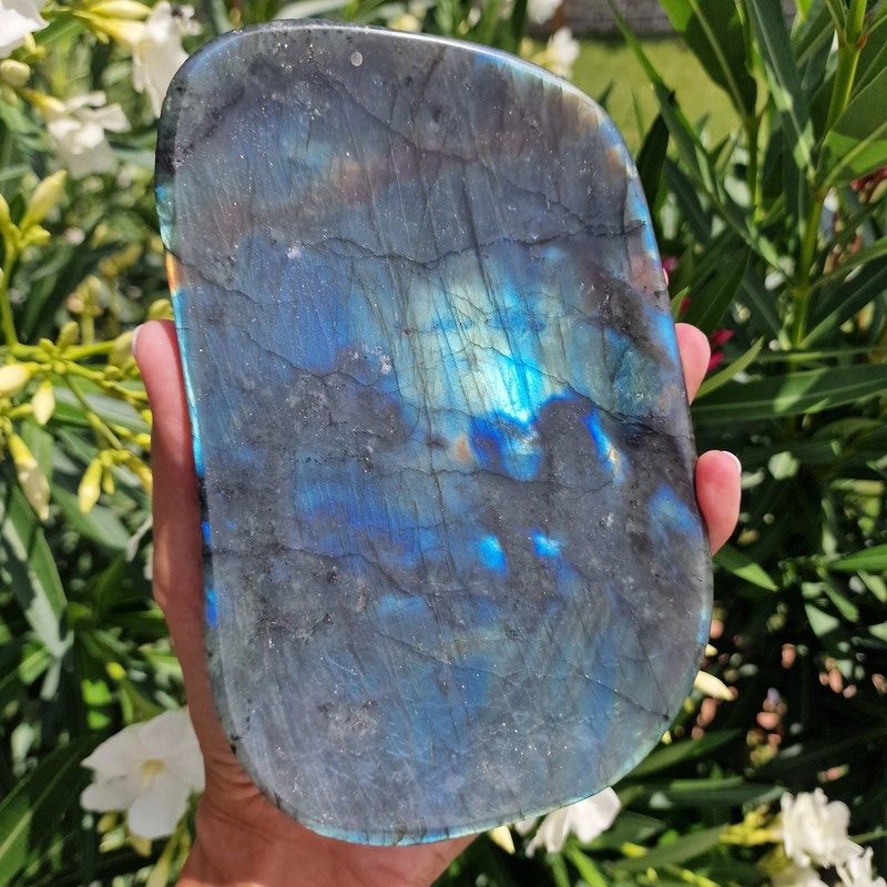 A plagioklász földpát sorozat középső tagjának, a labradoritnak ritkán előforduló kristályai táblásak. Leggyakrabban kristályos tömegekben fordul elő, melyekben mikroszkopikus méretűtől a méteresnél is nagyobb kristályai lehetnek. Gyakori jellemzője színjáték effektus a, a labradorizálás , az irizáló színek, főleg a kék színjátszása a hasadási lapjain. A labradorizáló kristályait kabosonra csiszolva drágakőként használják. Ezt a hatást a fény szóródása okozza, mely a lehűlés alatti vegyi elkülönüléskor, az ásványba került másik földpát vékony rétegén történik. A labradorit alapszíne általában kék vagy sötétszürke, de színtelen és fehér is lehet. Az átlátszó labradorit sárga, narancsszínű, vörös vagy zöld is lehet. A labradorit bizonyos közepes kovatartalmú vagy kovaszegény magmás és átalakult kőzetek fontos alkotó ásványa, a bazaltban, gabbróban, dioritban, andezitben és az amfibolban is előfordul. Erős labradorizálású követ spektrolitnak nevezik.