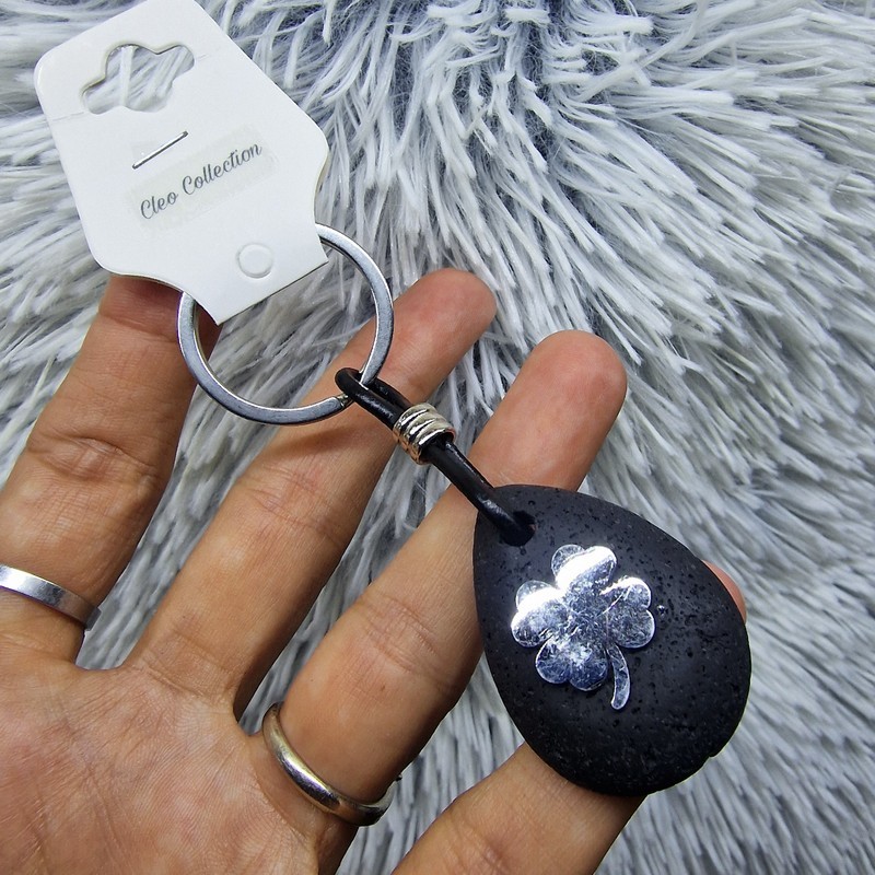 Lávakő kulcstartó – Lóhere medállal