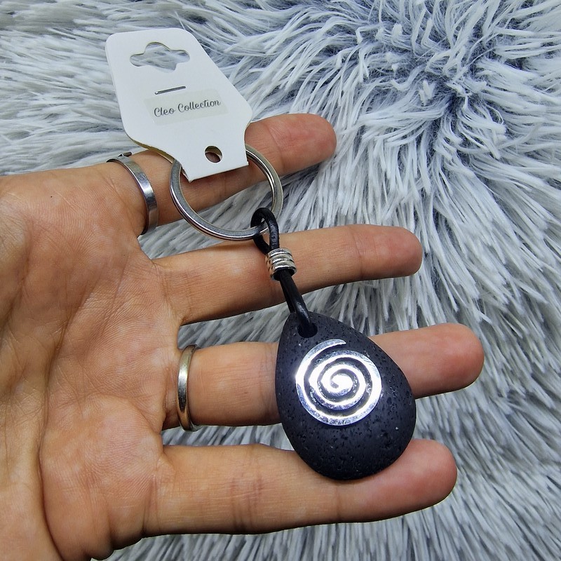Fedezd fel az egyensúly és energia szimbólumát ezzel az elegáns lávakő kulcstartóval, amelyet egy spirál medál díszít!