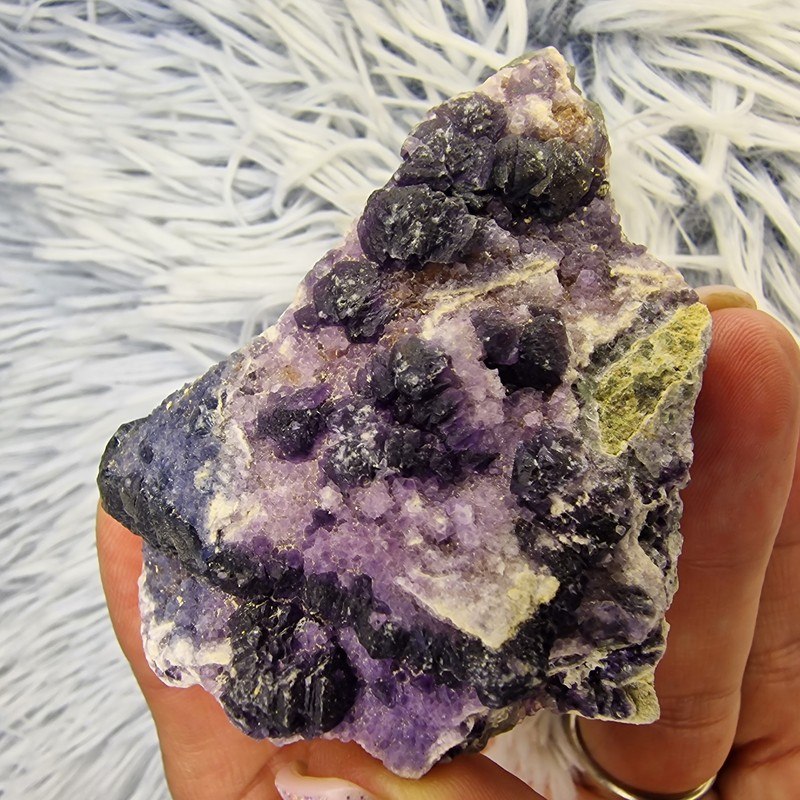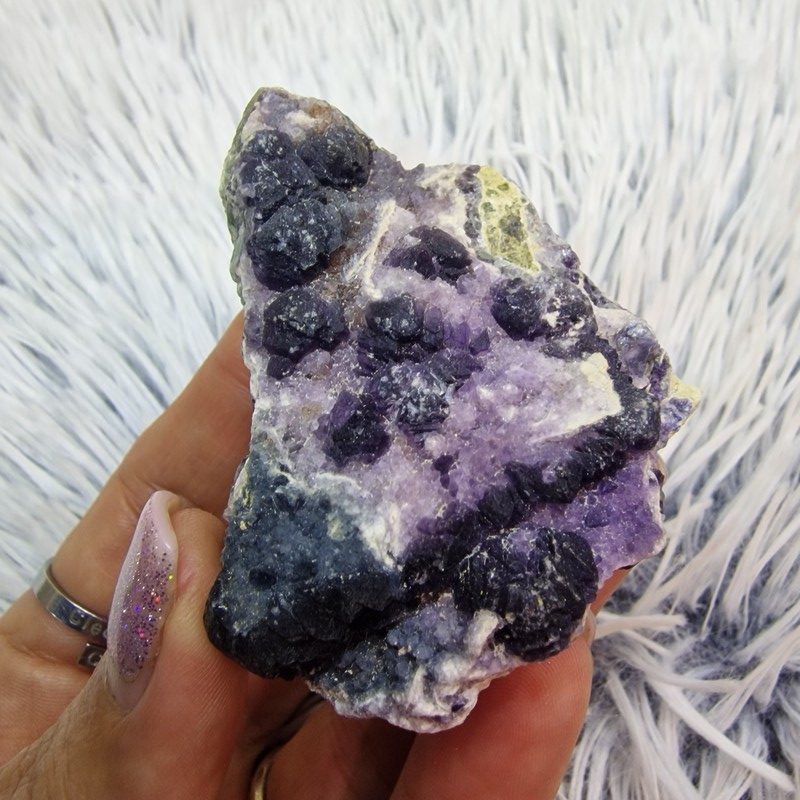 Ez az ásvány a tisztánlátás, belső rend és fókusz köve. Segít rendezni a gondolatokat, enyhítheti a stresszt, és támogatja a meditációt. A lila árnyalatok a harmadik szem csakrához kapcsolódnak, míg a mélykék tónusok segítenek az intuitív megérzések felerősítésében.