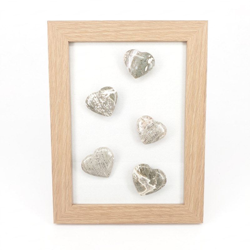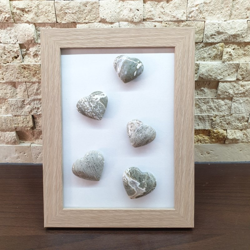 5 db óceán jáspis ásvány szívből készített álló dísz.