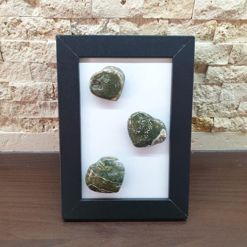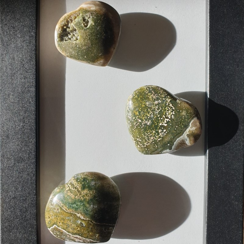 3 db óceán jáspis ásvány szívből készített álló dísz.