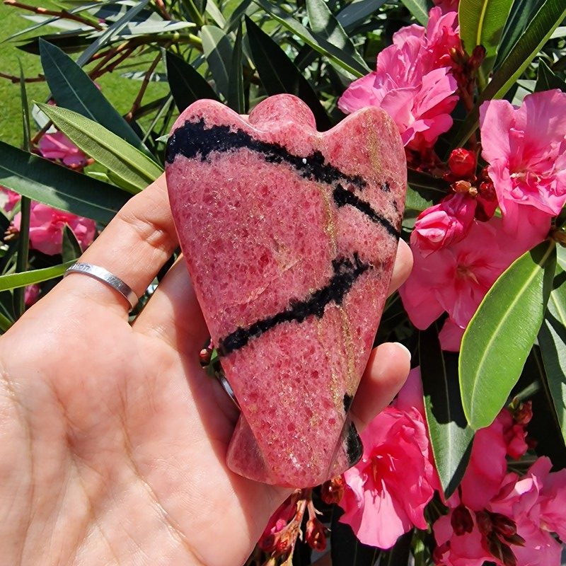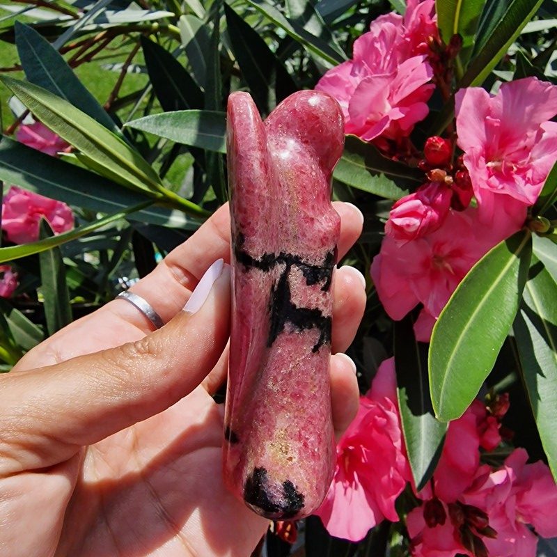 Rodonit ásványból faragott angyal, Madagaszkárról.