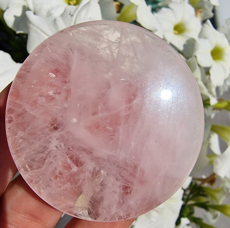 Rózsakvarc ásvány korong. A csoportképen lévő egyik terméket küldjük.
