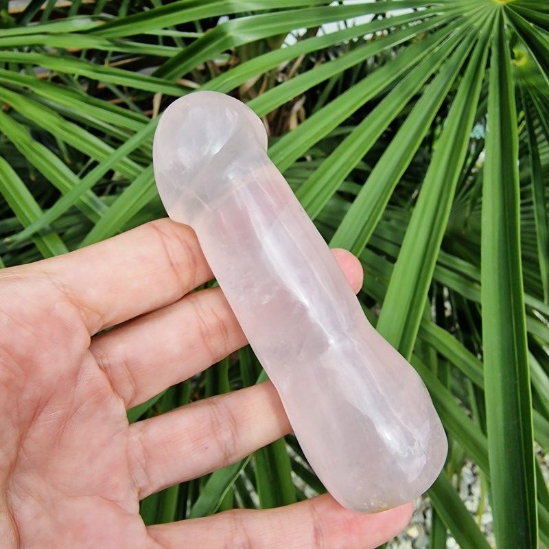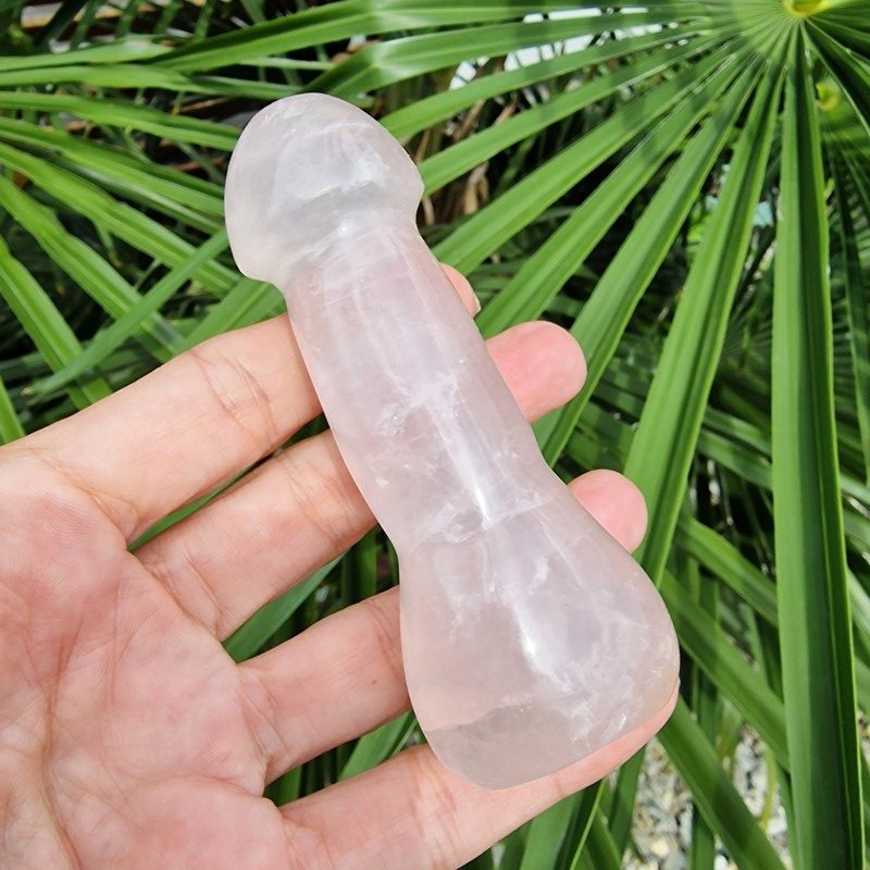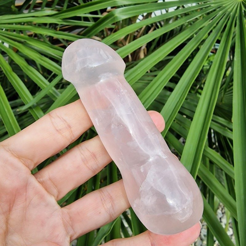 Rózsakvarc ásványból készített pénisz faragvány Madagaszkárról.