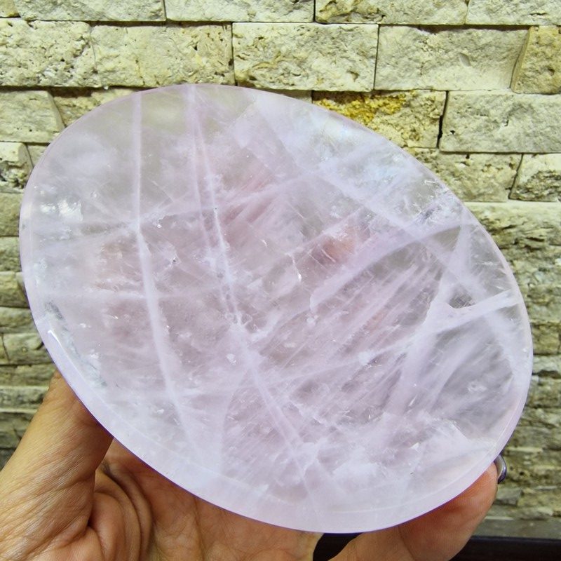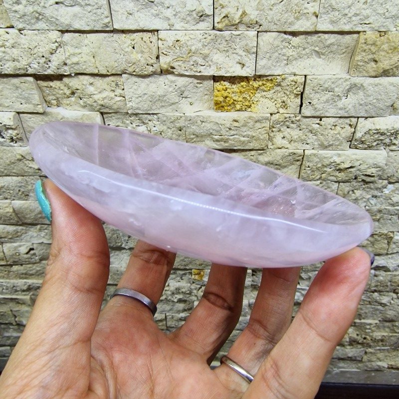 A természetes rózsakvarc lágy rózsaszín árnyalata minden térbe melegséget hoz, így a tál tökéletesen használható: