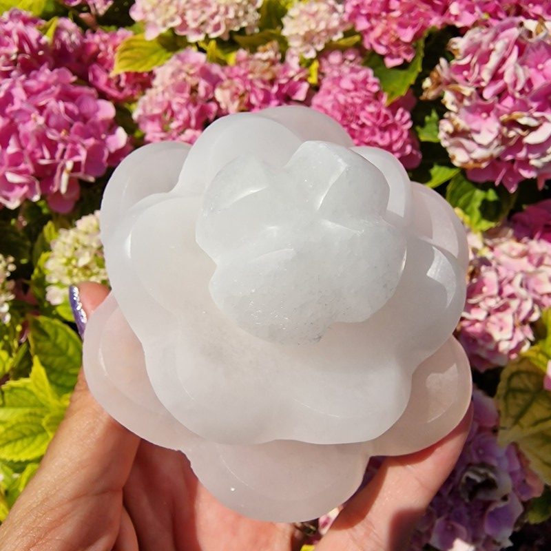 Szelenit ásvány lótusz virág Marokkóból. Megtekinthető videón Instagram oldalunkon.