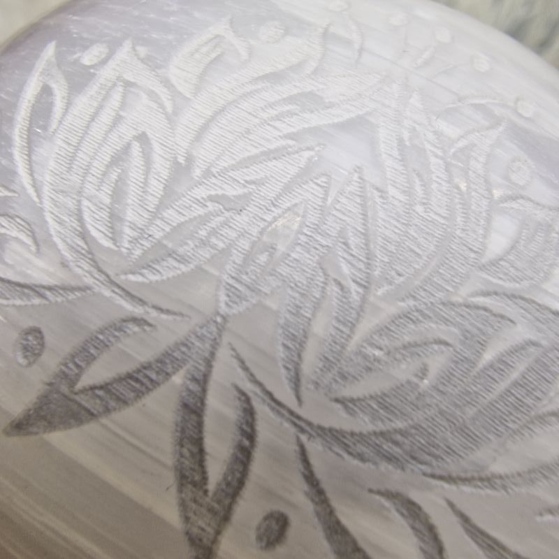 Szelenit ásvány marokkő lótuszvirág gravírozással