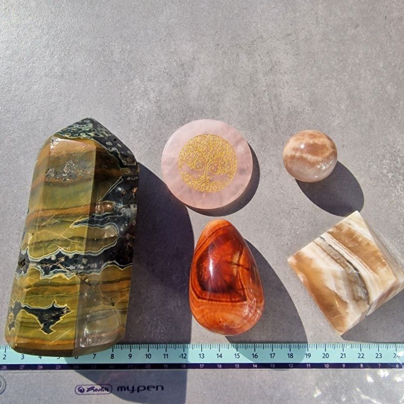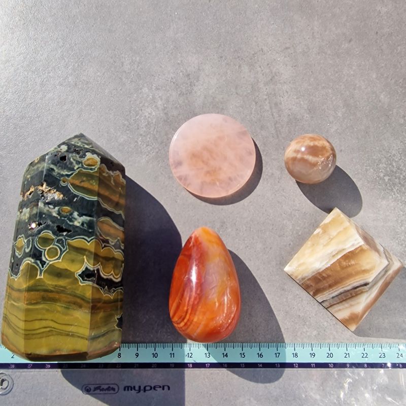 Ez az 5 darabos, többféle ásványból álló csomag gondosan összeválogatott darabokat tartalmaz, amelyek színben, rajzolatban és megjelenésben is szépen kiegészítik egymást. Ideális választás, ha egyszerre több ásványt szeretnél kézbe venni, gyűjteni, lakásdekorációként használni, vagy ajándékba adni.