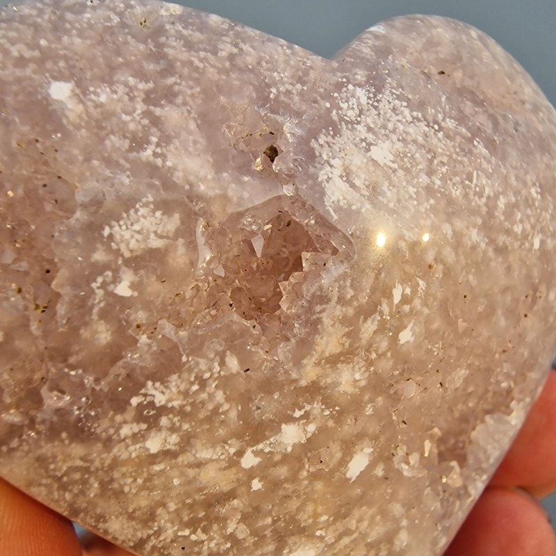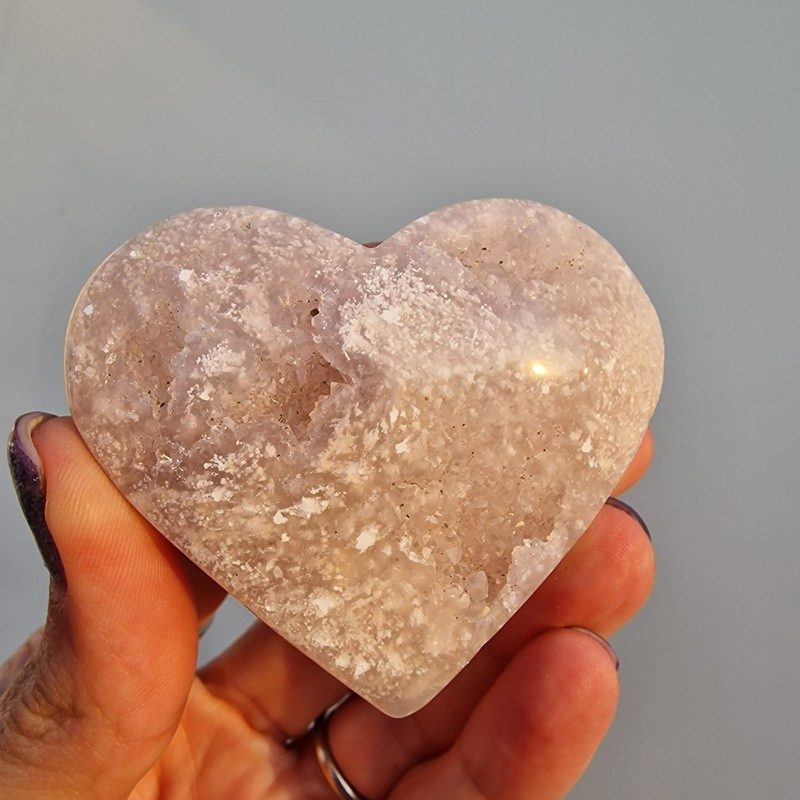 Virág achát ásvány szív. Gyönyörű drúza résszel.